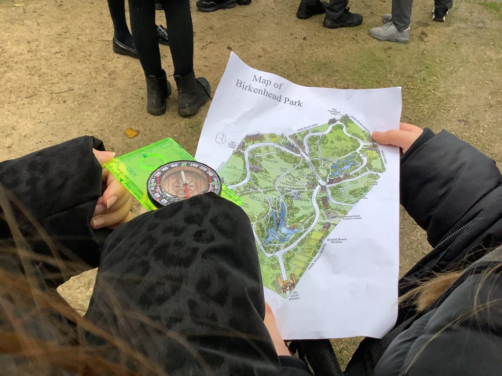 As part of their North America topic, the class visited Birkenhead Park, which served as an inspiration for Central Park. Pupils used compasses and maps to locate various landmarks around the park.