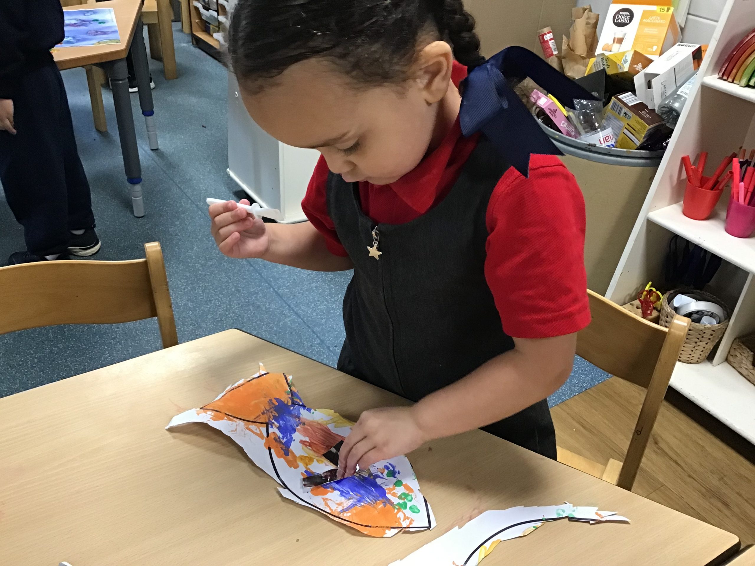 60The children explored the artist Jenny Berry, they looked at different images of Jenny Berry’s art, and they were influenced to create their very own under the sea art. Our theme for this term is under the sea and this ties with our English story “The Storm Whale”.