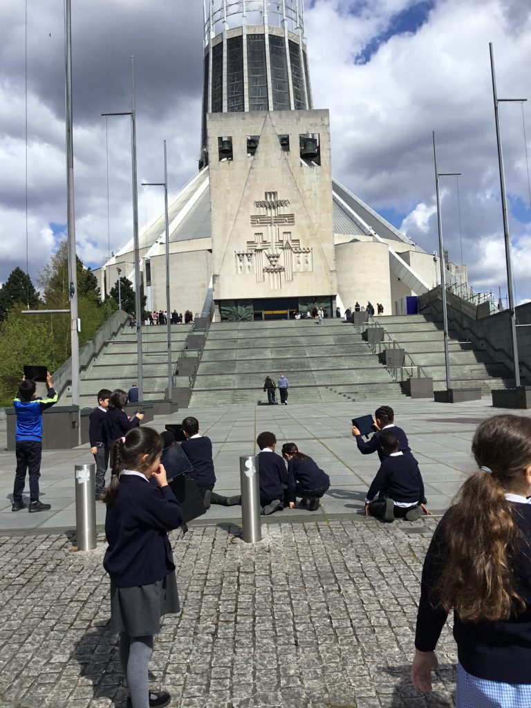 Class 2 put all their photography learning into place by visiting the Metropolitan Cathedral of Christ the King to take photographs. They thought about their subject, background and how to position the camera to get the best photograph.