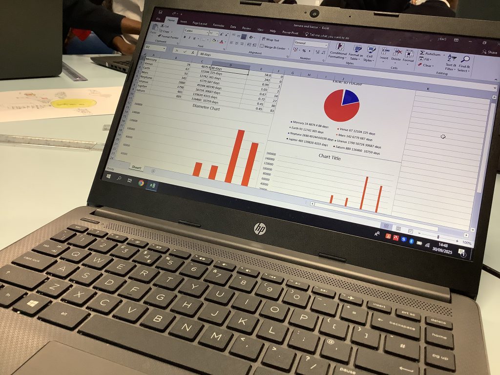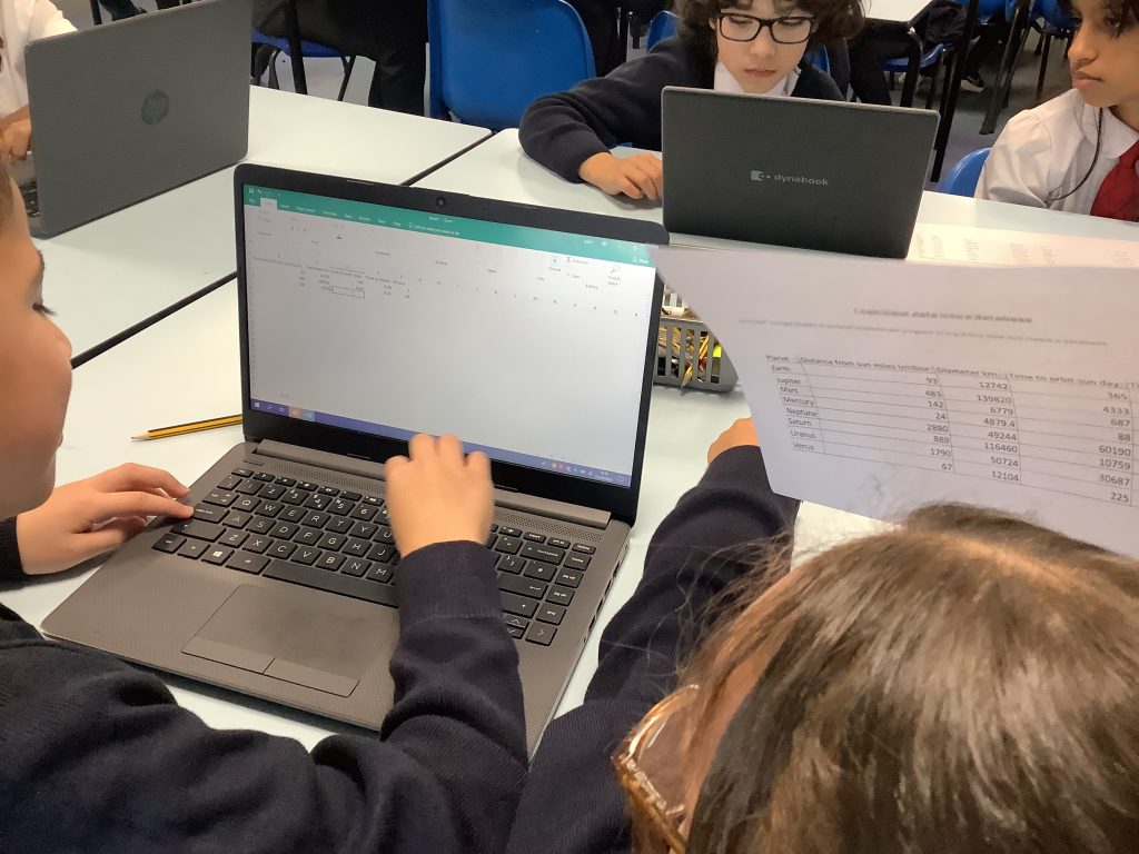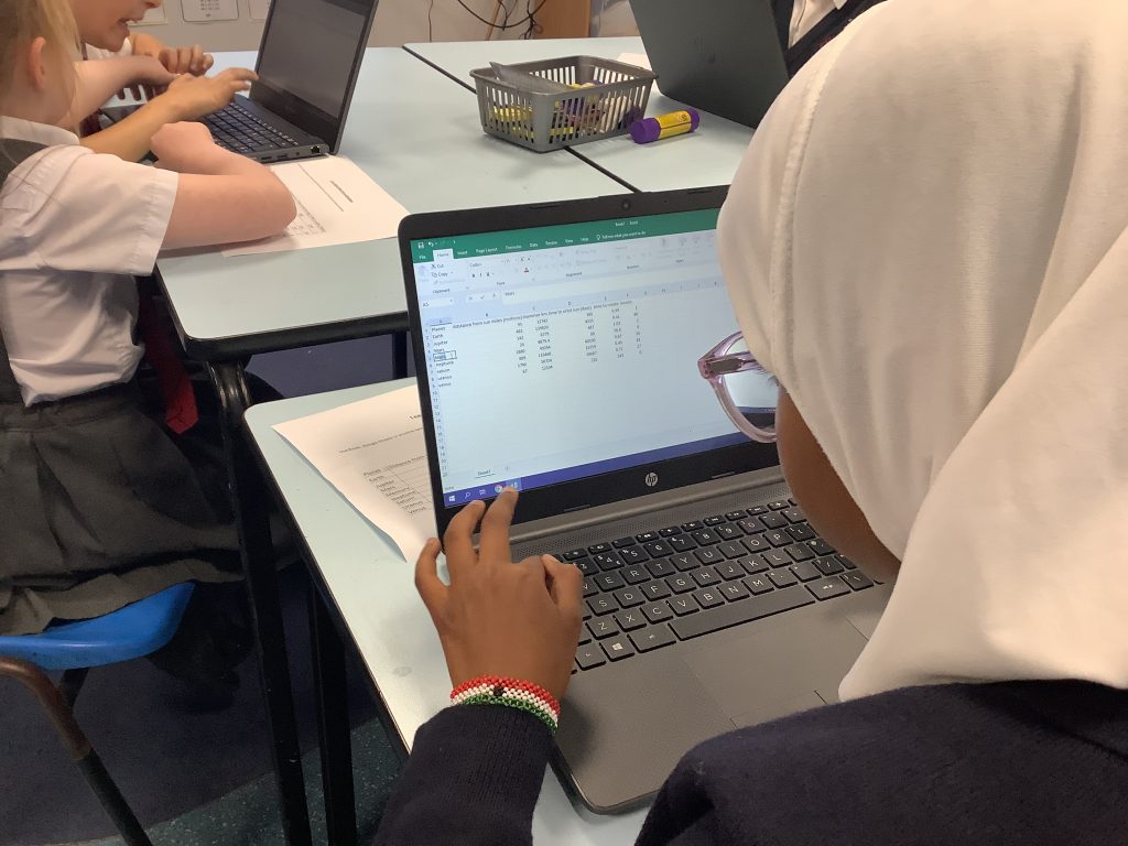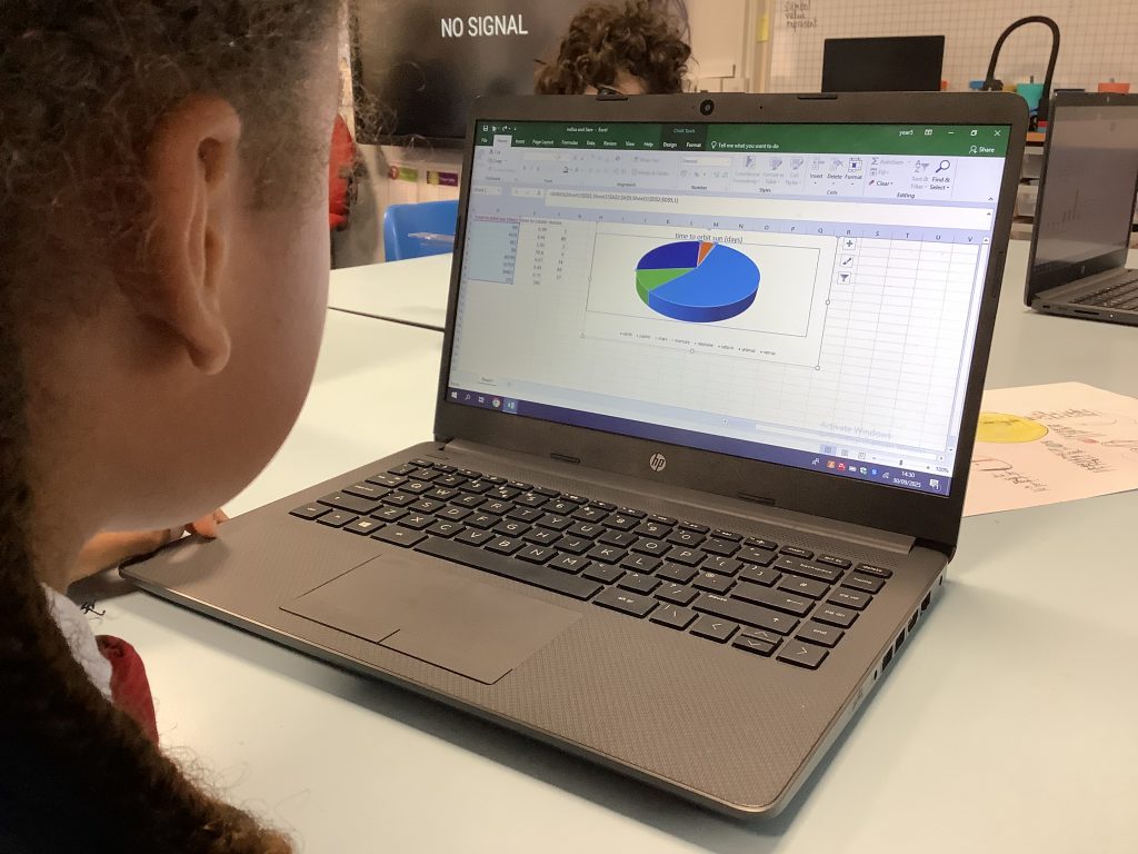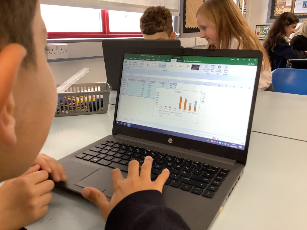 The children used the charts function to create a variety of charts to represent data. They also used the find and replace feature to understand how databases can be more efficient than a paper version.