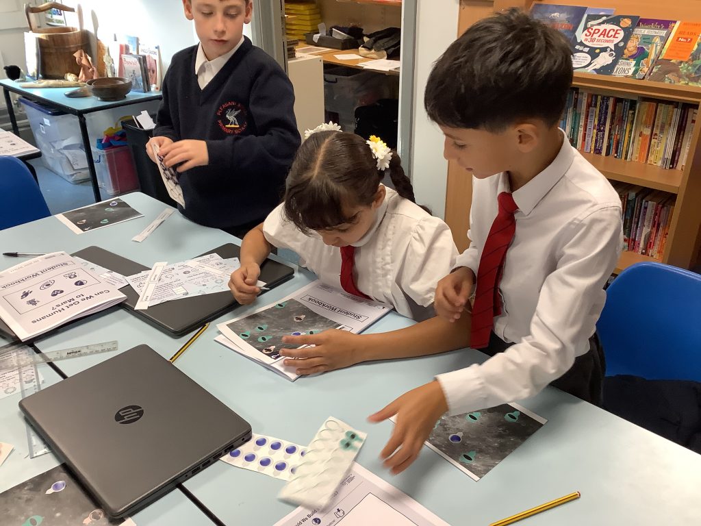 Today we had a visitor for our science lesson. Our mission today was to become geologists and explore the surface of the moon, learn about its features and to decide where to build a Moon base.