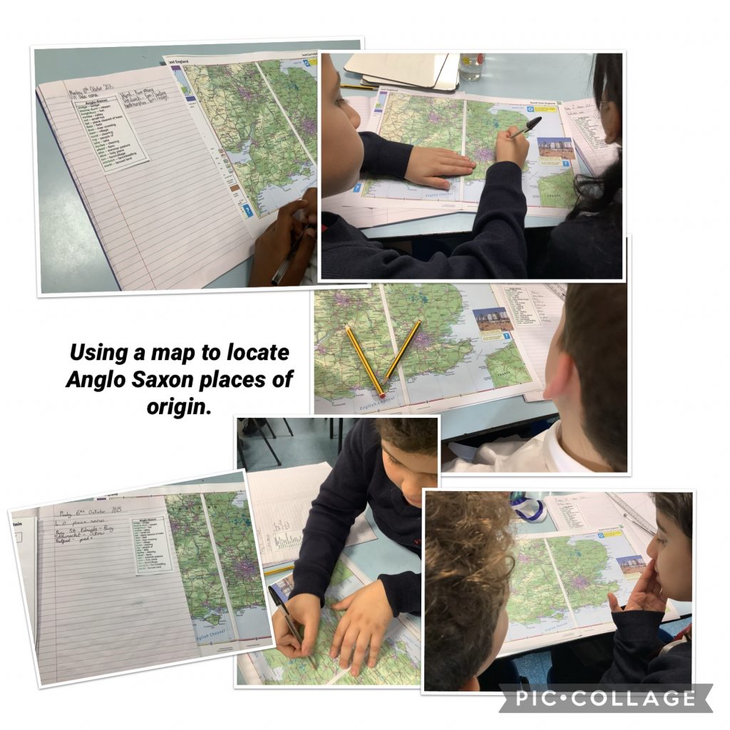The class worked hard this afternoon to find places of Anglo-Saxon origin. They located places on a map and thought about the meanings of these place names.