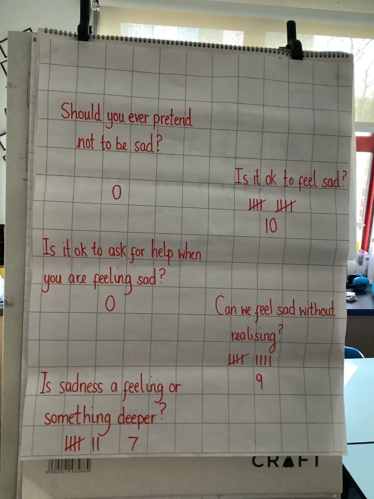 The children read a poem about sadness this morning, then used it as a stimulus for our P4C session.