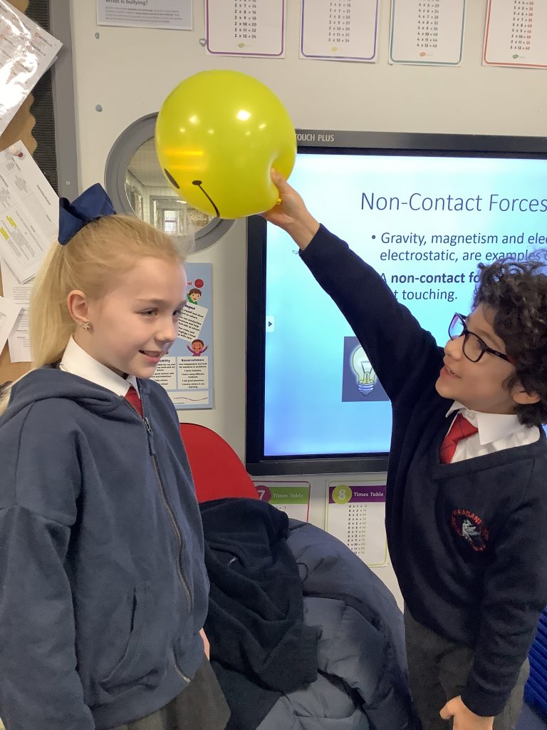 Class 5 have been learning about contact forces and non-contact forces. We used different materials such as balloons, ping pong balls and marbles to demonstrate this.
