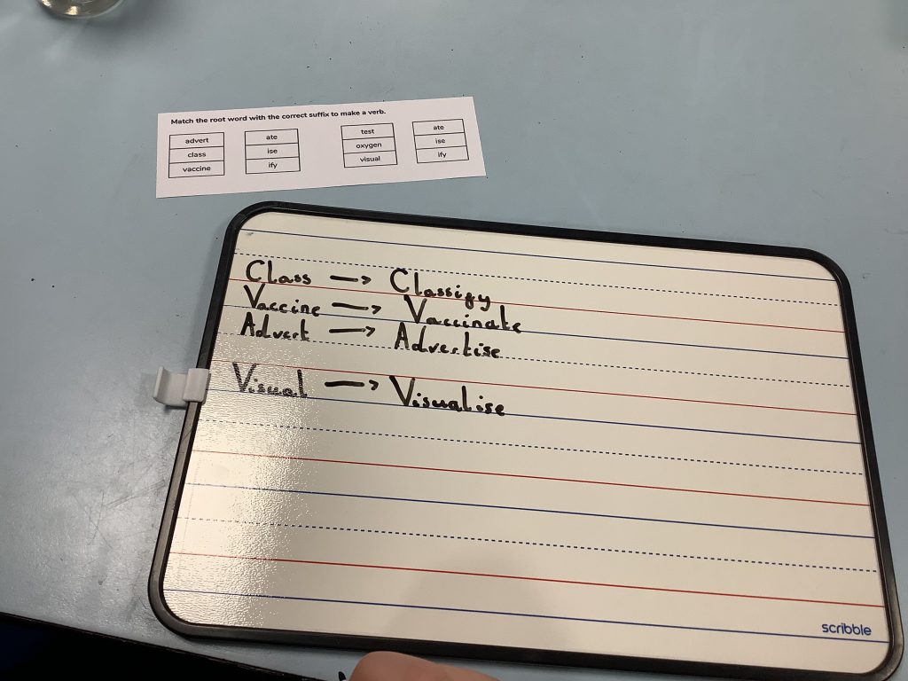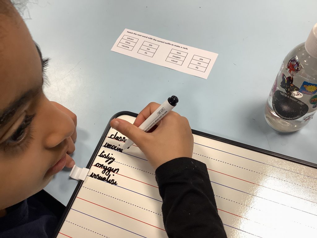 For today’s activity, the children made sentences by rearranging muddled words.