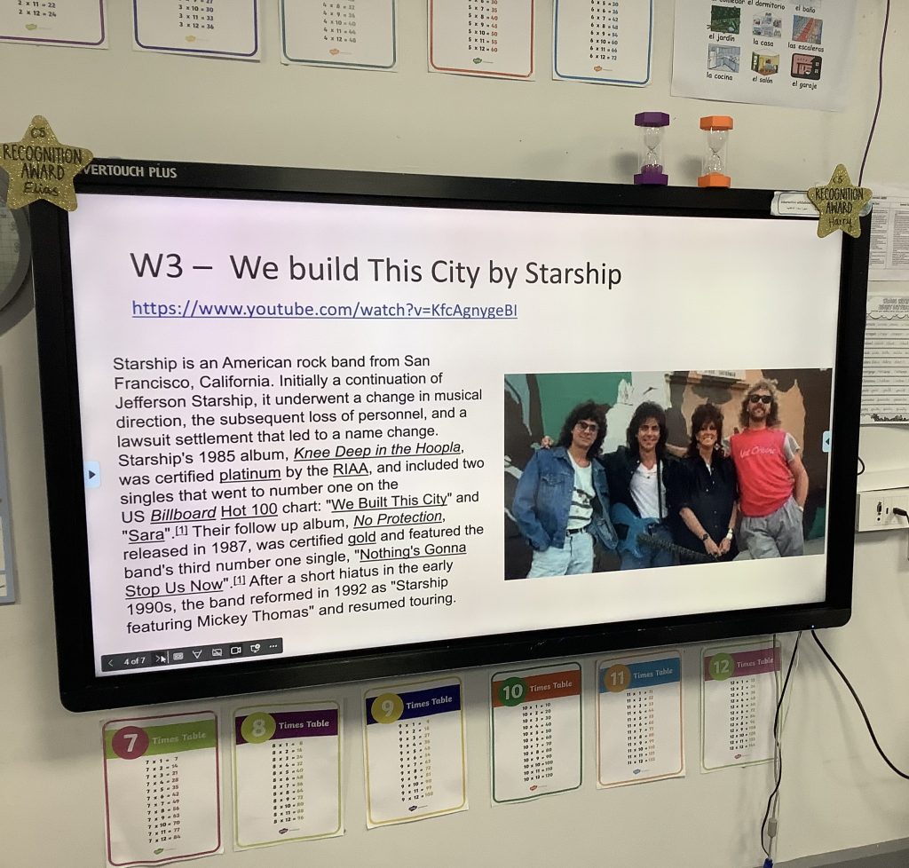 The children sang along to Starship this afternoon – ‘We built this city’