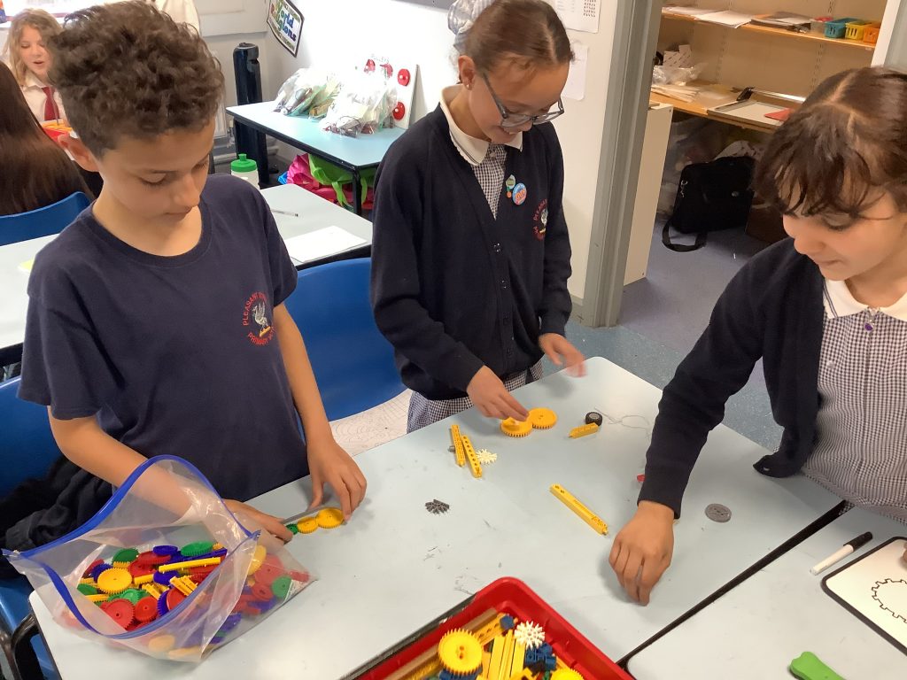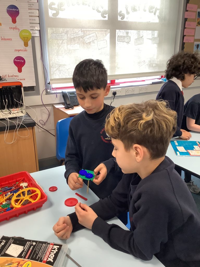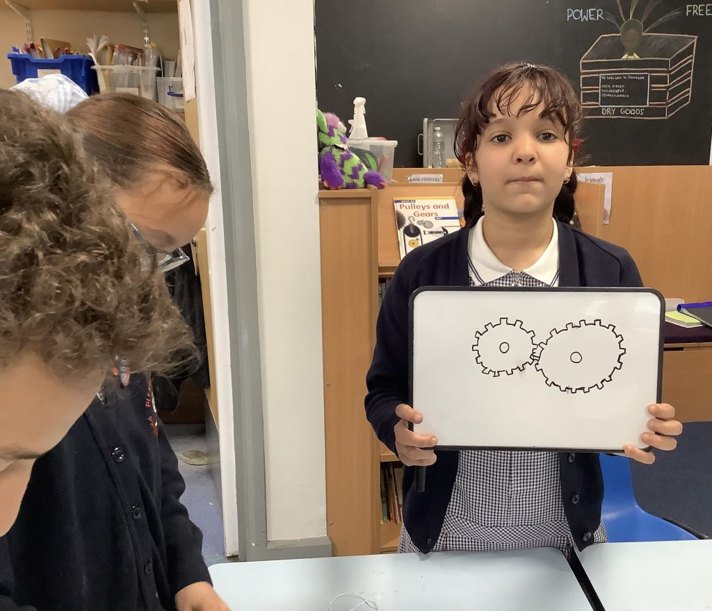 The class spent time this afternoon researching how gears and pulleys worked. They will use this knowledge to help them design their fairground rides.