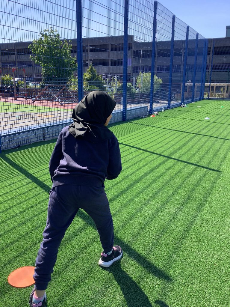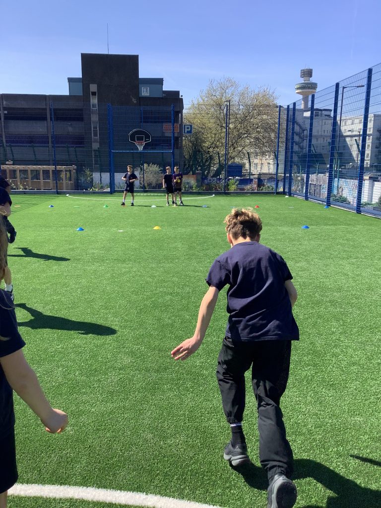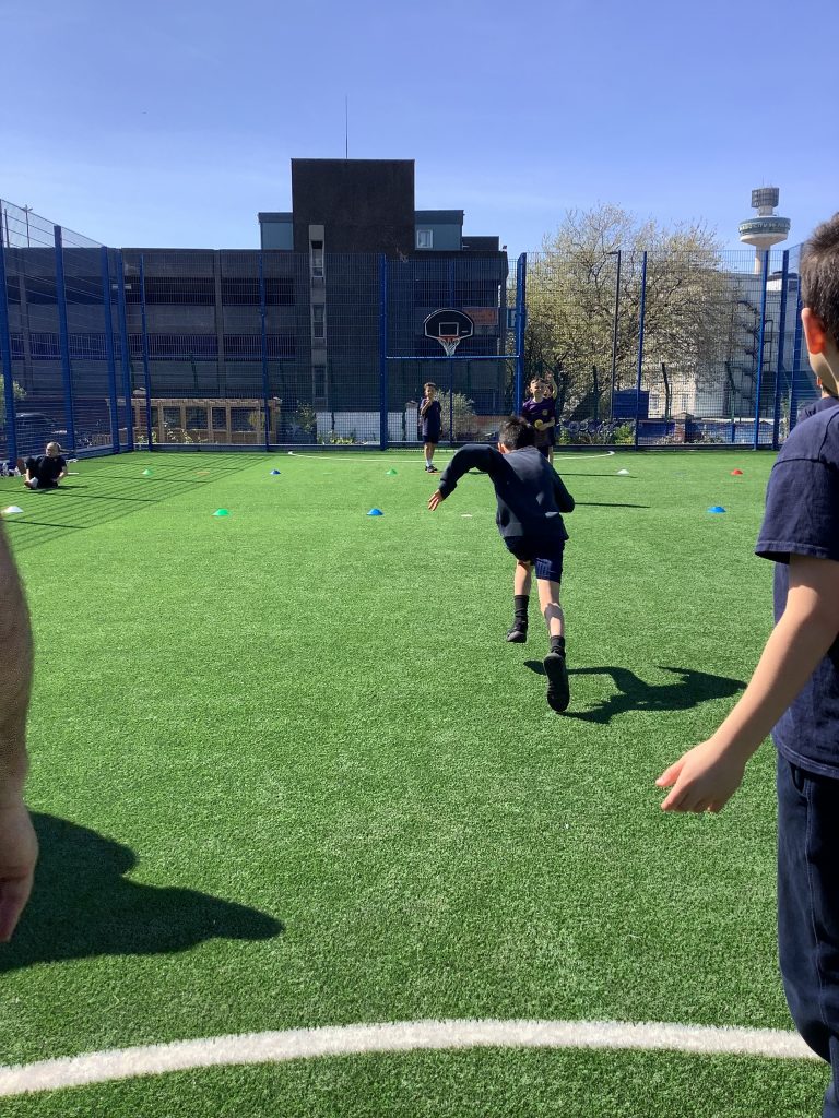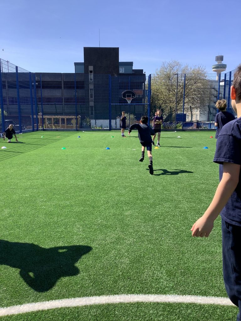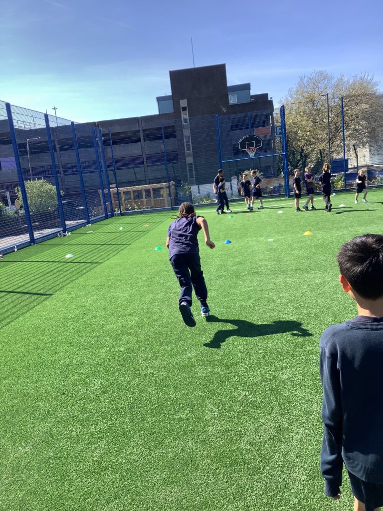 Practising pace and stride patterns this week in athletics. The children were reminded to maintain speed until the end of the race.