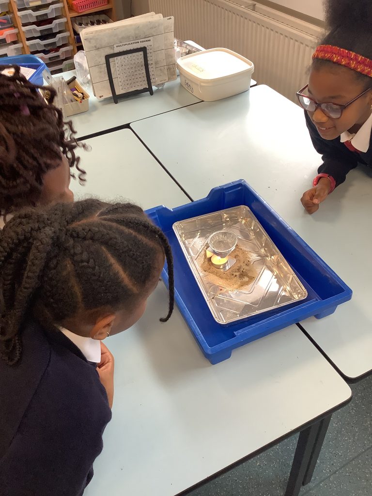 Today in science we were measuring temperature in the room, a beaker of tap water and ice water. This was exciting to see the difference in temperature on our thermometers. We also used a candle with a tinfoil case with water in to see some water vapour.