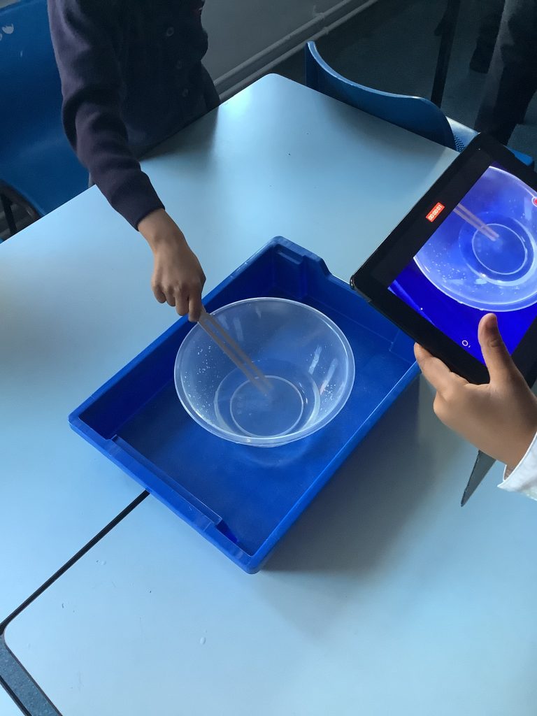 Today we are learning about Sound waves and the meaning of Amplitude. We used sound tongs, a bowl of water and the slow motion setting on our iPads. This was very interesting to be able to see the movement of the water in the bowl once we banged the tongs and put the against the water.