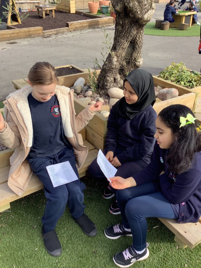 Today we went outside to do some more work of our poem and pick parts to do in our groups.