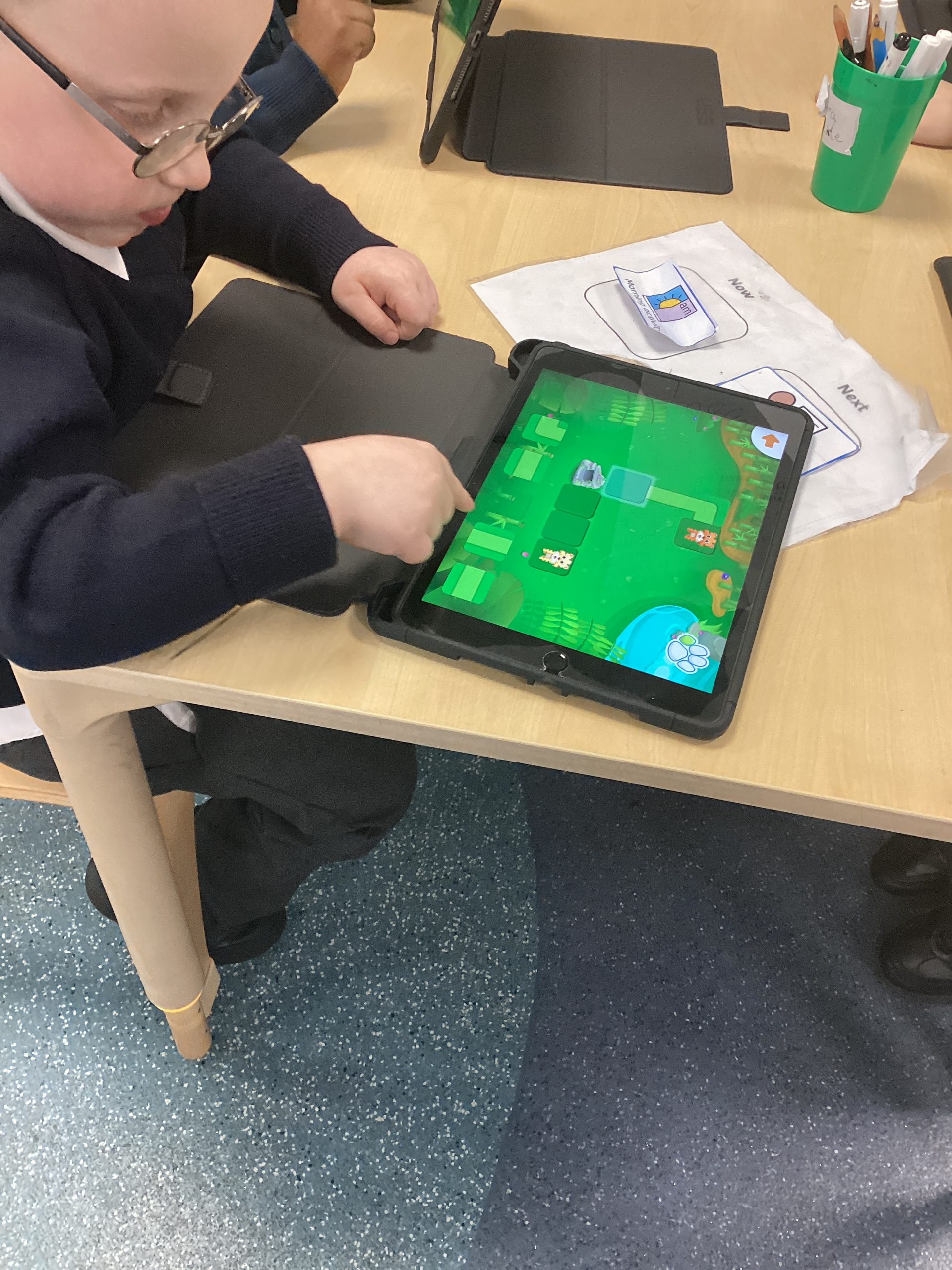 This morning Class 1 has been recapping what Algorithms are and why they are used when coding. Today children had to create algorithms to get a robot to complete different levels, we focused on moving forward and how we can use the turn right and left blocks to change direction. Children then looked at how we could apply this knowledge to a Beebot and created a ‘help sheet’ to use in the next lesson.