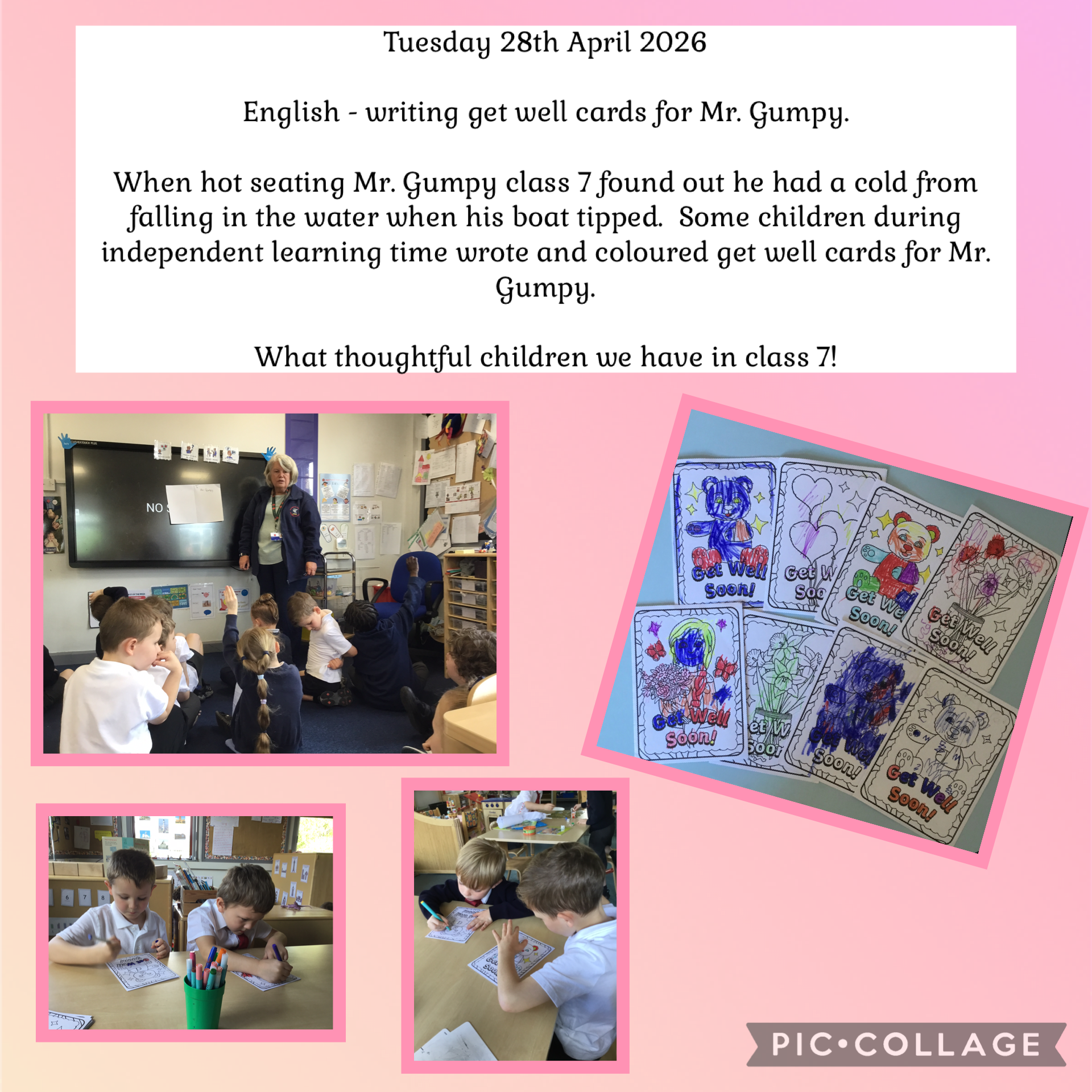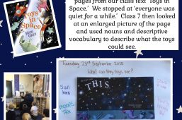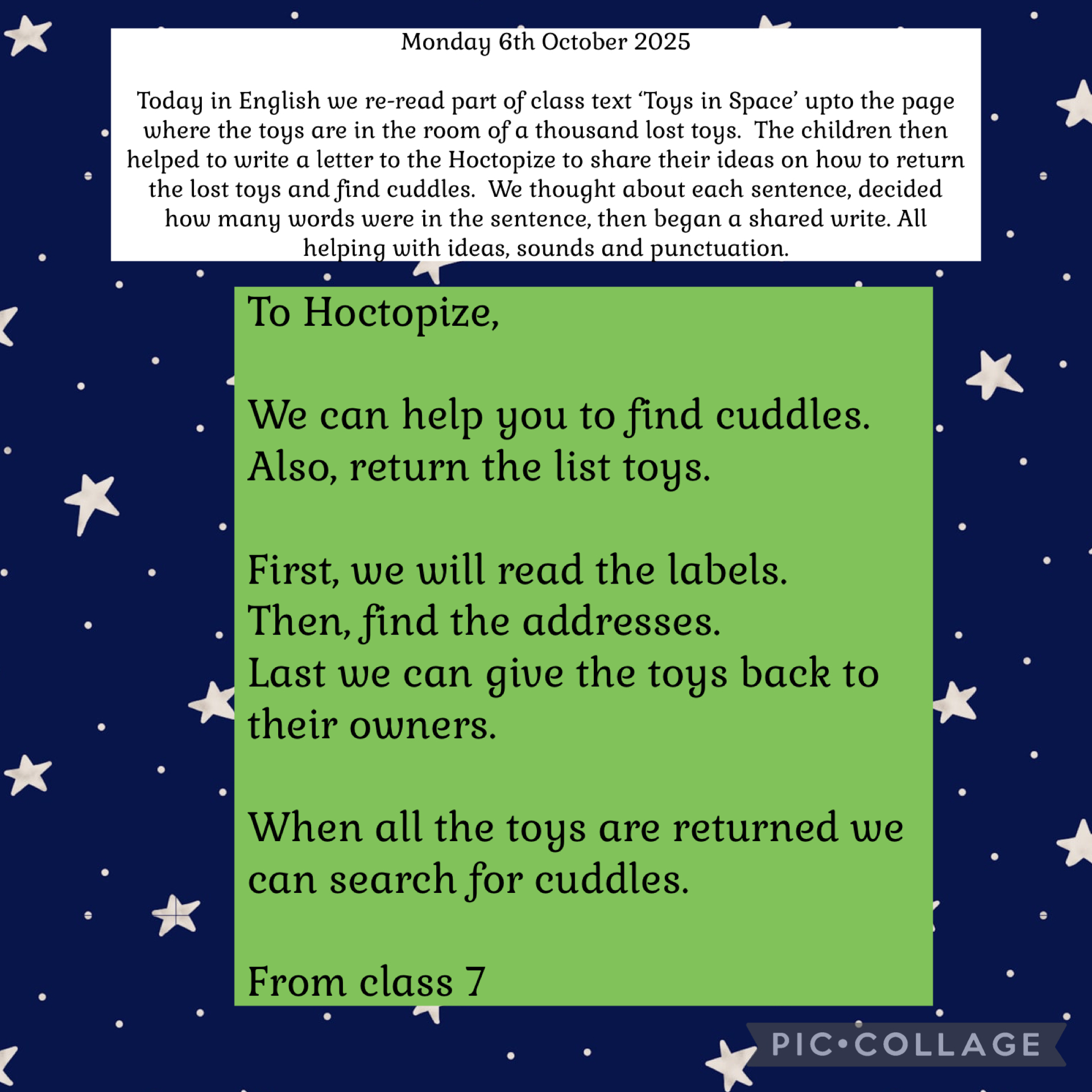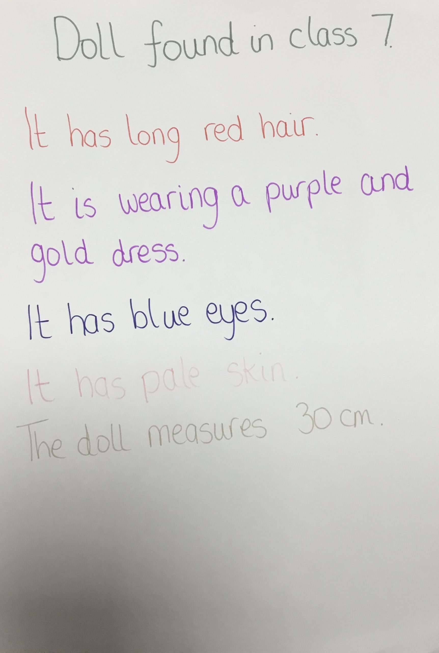Class 7 completed a whole class write to create a poster. Some children then drew images of the doll.