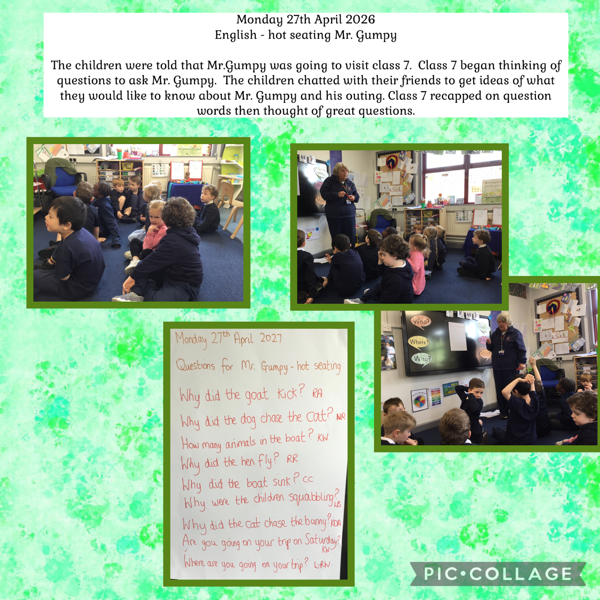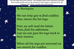The children worked in groups to generate questions to ask our special visitor. They explored different question words and what they are used to find out, including How, Why, Where, Who and What? They were delighted to receive a visit from not one, but two Lonely Beasts! They asked questions and listened carefully to the answers.