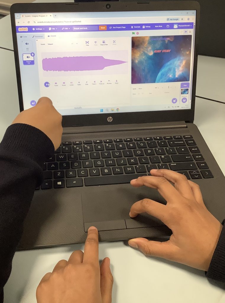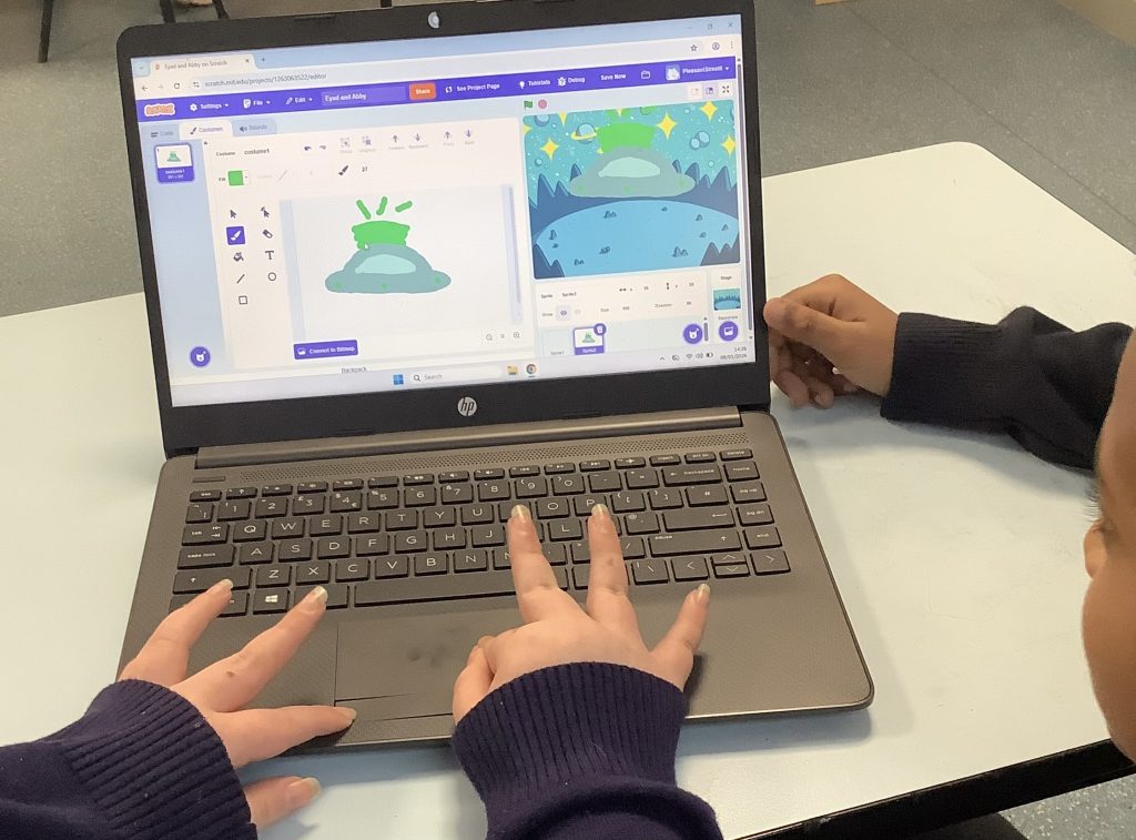 This morning class 6 started a new unit of work, Today we focused on laying the ‘foundations’ ready to start develop our game during the next lesson, children designed a series of backgrounds in to show at the beginning of the program and designed and coded a character to move left and right on the screen.