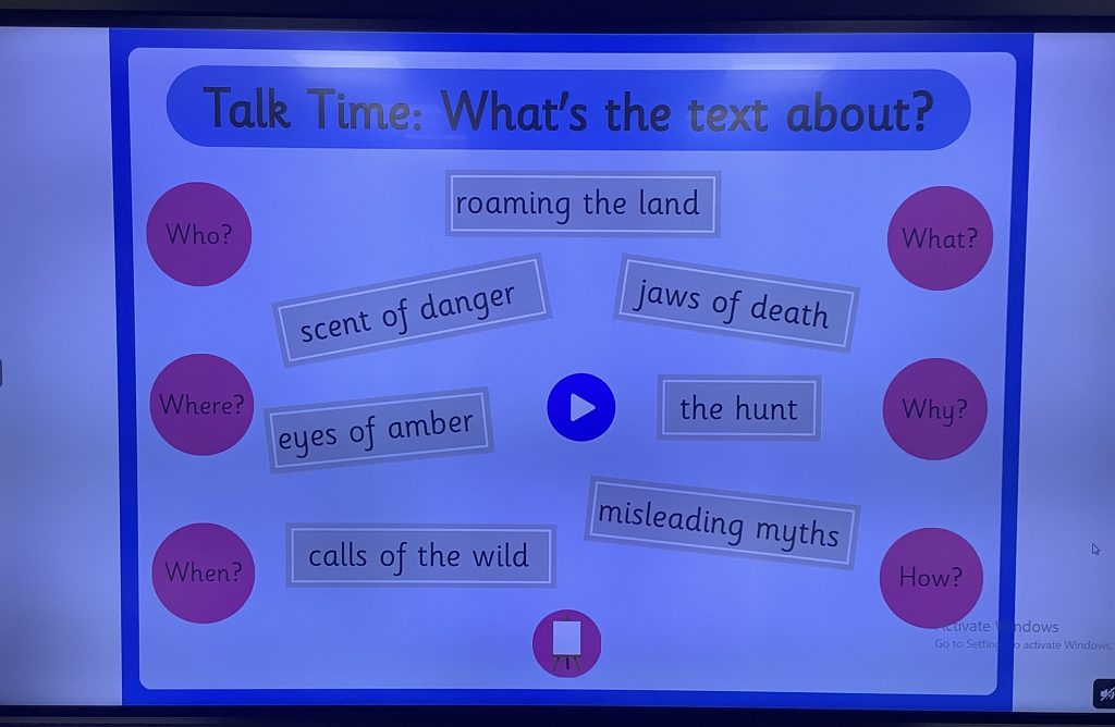 Today in Class 6 we were using the Hook to make our predictions on a variety of pictures from a story. They were asked to work as a class making predictions together and then make their own predictions in their books.