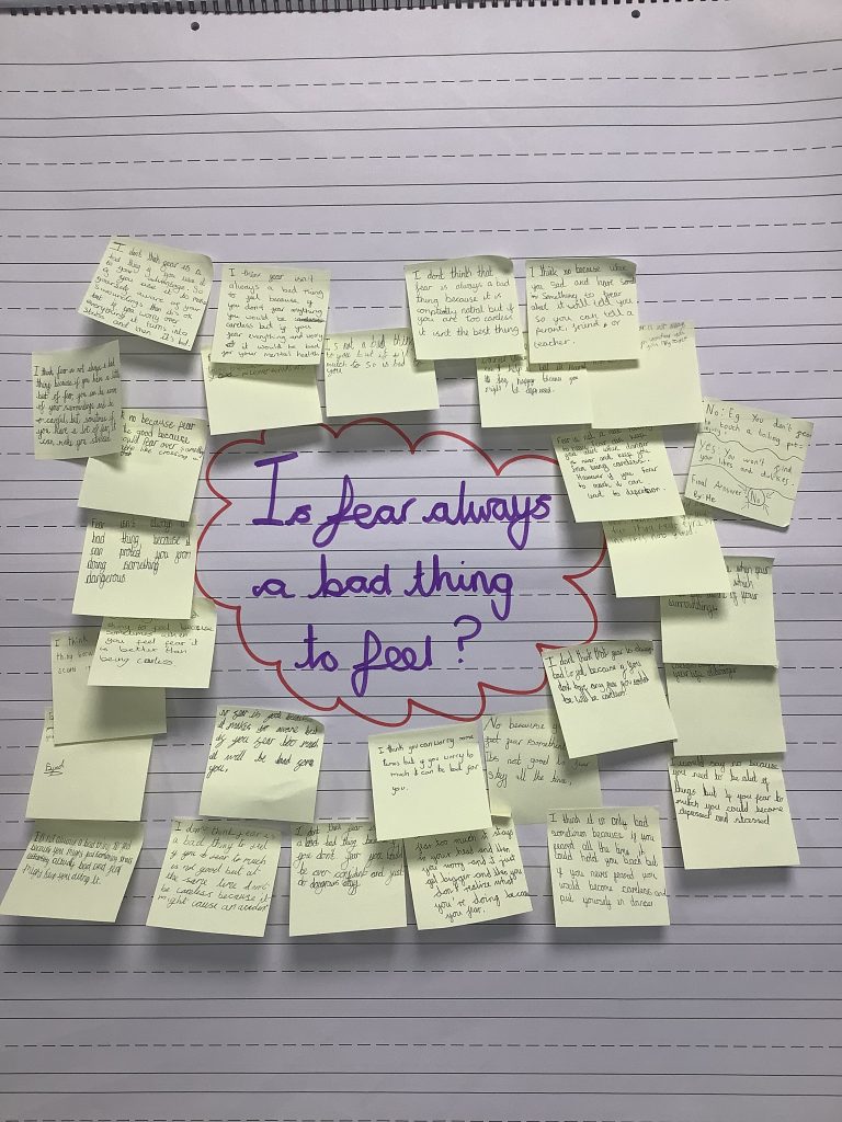We reflected privately on the story then shared our reflections before choosing our question of the day… ‘Do you always need to overcome your fears?’