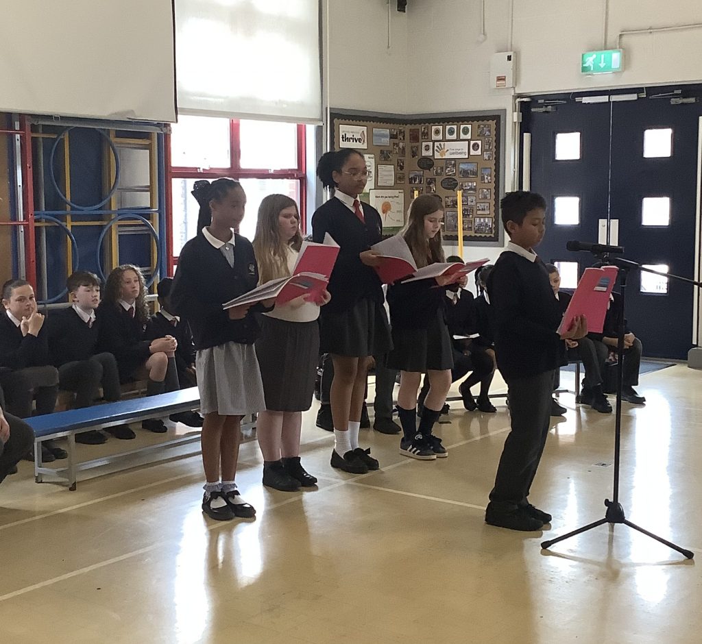 Reception then performed a verse from the poem ‘I Rise’. We were very proud of how confident the children were reciting the poem with actions in front of the whole school.