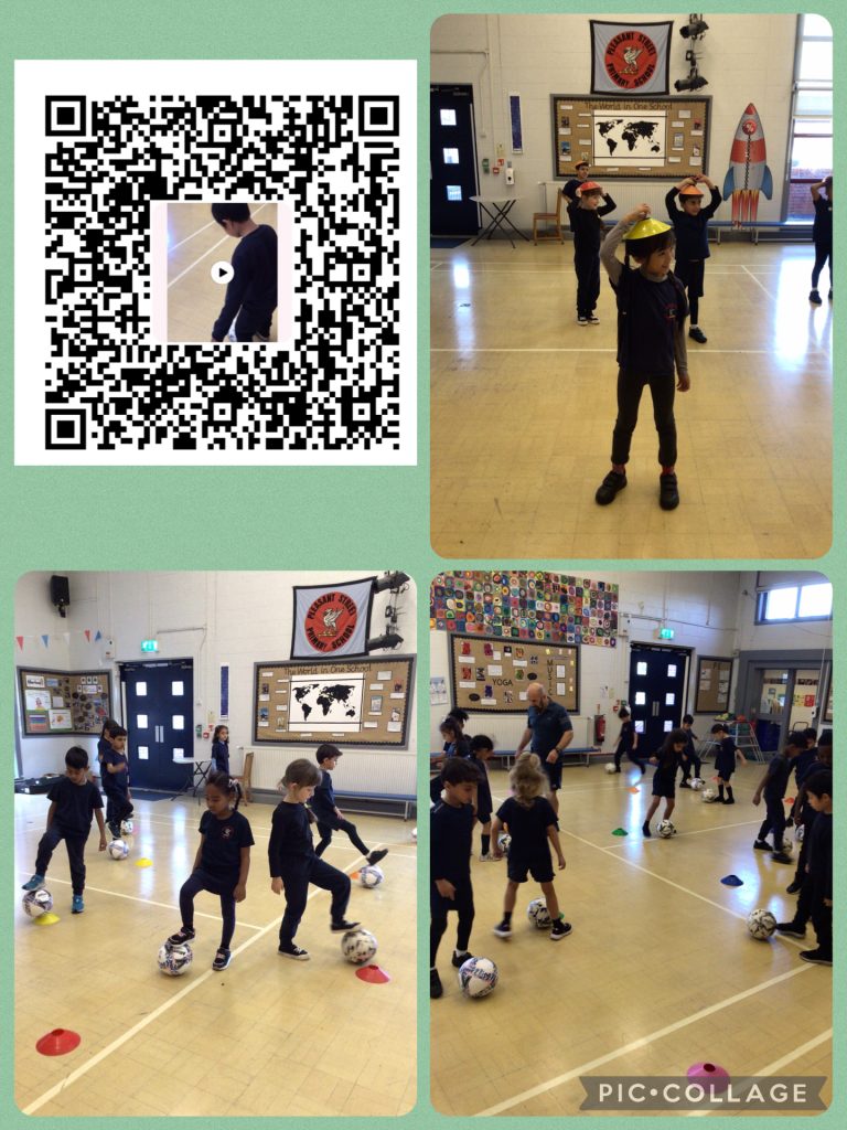 In PE today after our warm up we played a game of hats, we had to jog around then stop when the whistle blew and find a cone to put on our head like a hat.Then we had a go at some ball techniques like, forward & back,side step,tap & toe and instep out step.