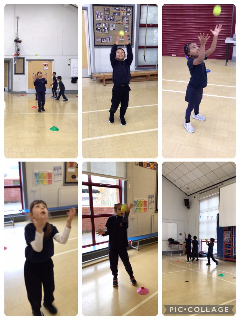 Class 2 enjoyed developing their throwing and catching skills. We focused on pushing the ball with both of our hands, releasing the ball when your hands are pointing at the target and using two hands and wide fingers to catch the ball. We applied our previous knowledge to enjoy and have fun with our partners. In groups of four we took turns to throw the ball at a cone, once we had successfully hit the target we could turn the cone over. We explored using different throws such as underarm, overarm or chest pass. To challenge ourselves we used different size balls and discussed if this made the activity difficult or easier.