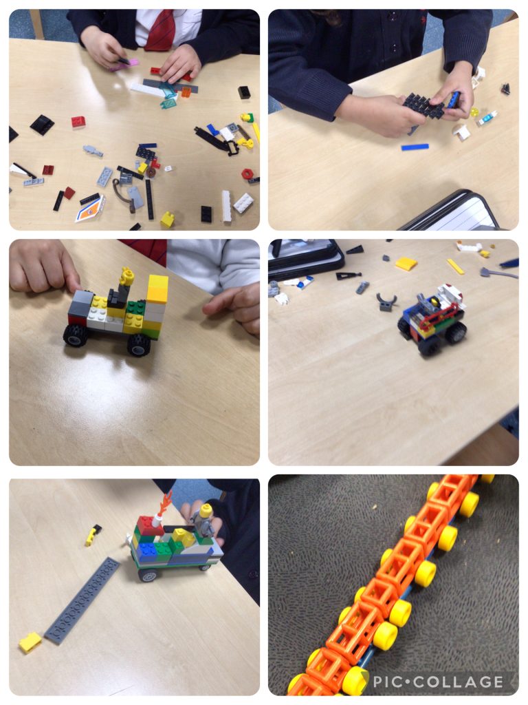 In DT today after doing some research we all had a go at making our own vehicles using Lego.We needed to make sure we had the right amount of wheels on so it could move.Some children who had finished had a go with different types of material .