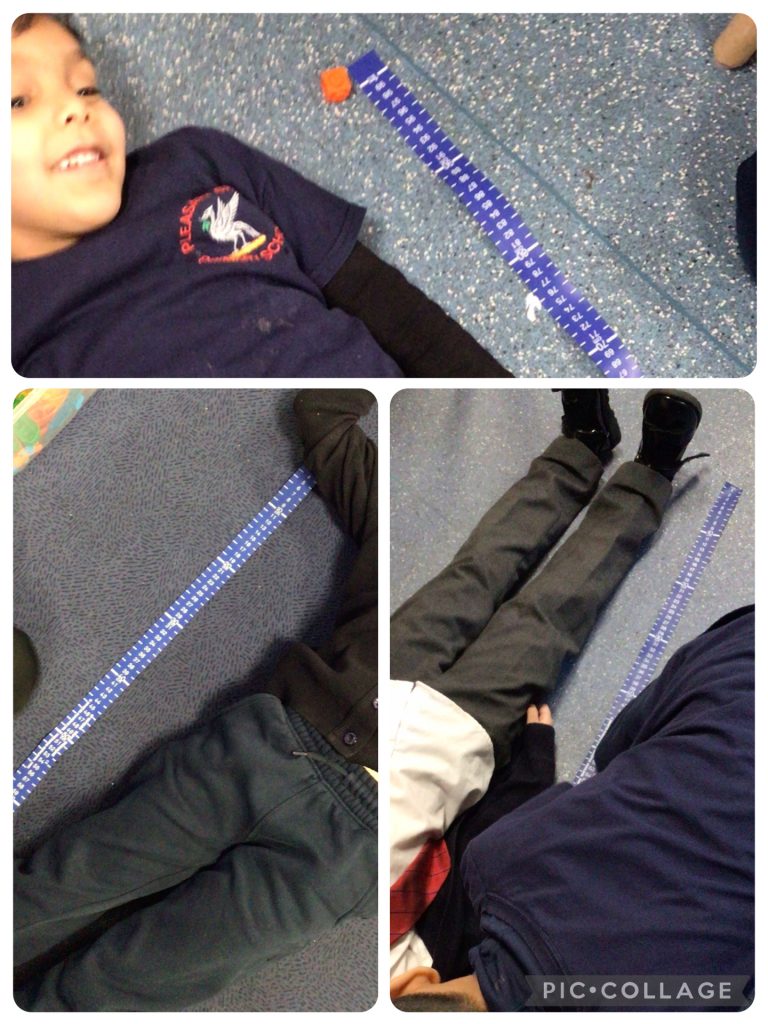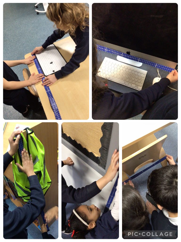 Today in class we used a tape measure and had a look around our classroom at things we could measure.Children measured things like a pencil,white boarded , computer screen and a chair.We noticed that they all had different measurements. We then got into pairs and had a go at measuring each other , we wrote down our measurements and compared them.