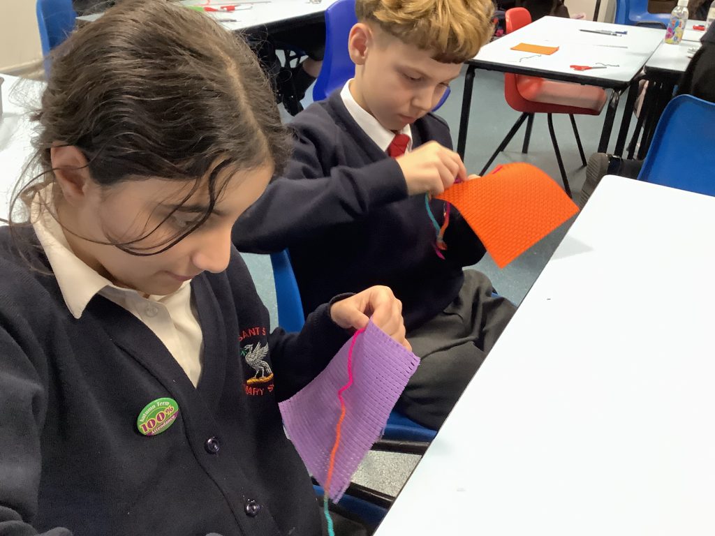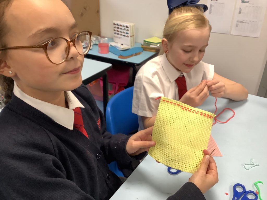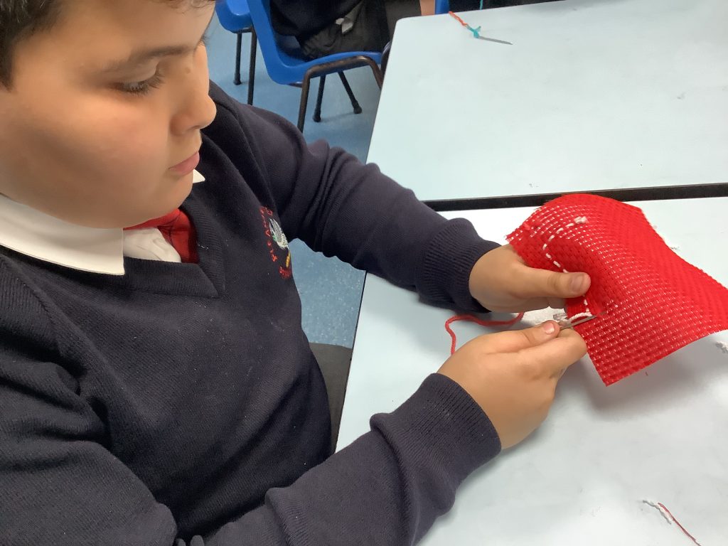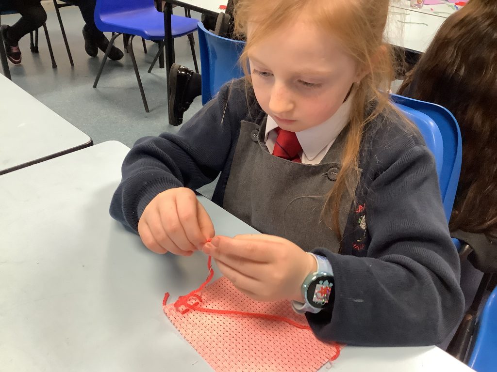 The class spent the afternoon practising their sewing skills, the running stitch proving to be very useful!