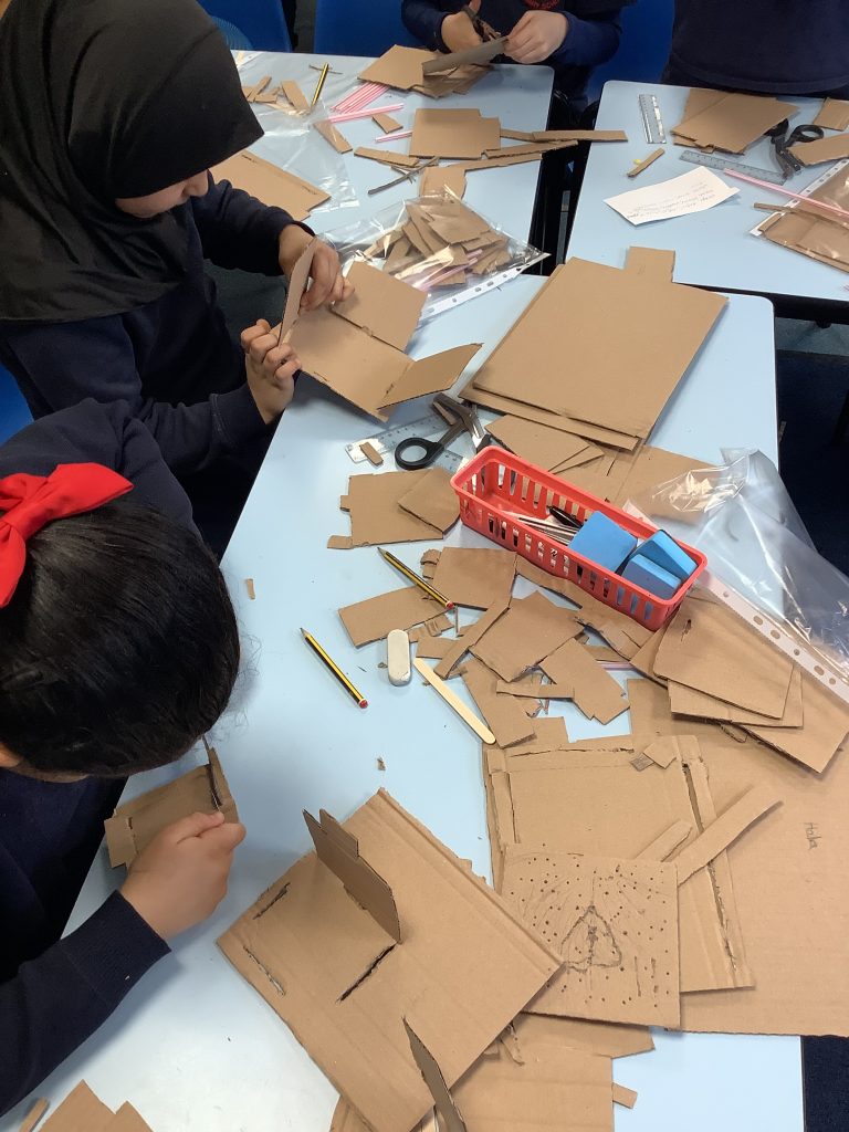 In D.T. we have been practicing making cardboard attachments as they will come in useful for building structures later on in our new topic.