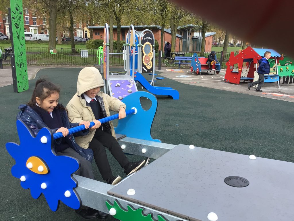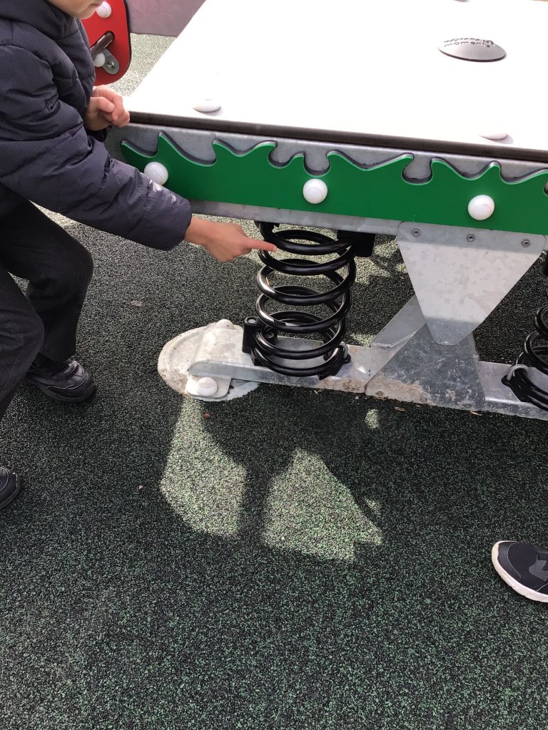 We went to the park and looked at different playground equipment. We discussed how the equipment moved, the materials used and then we tried the equipment.