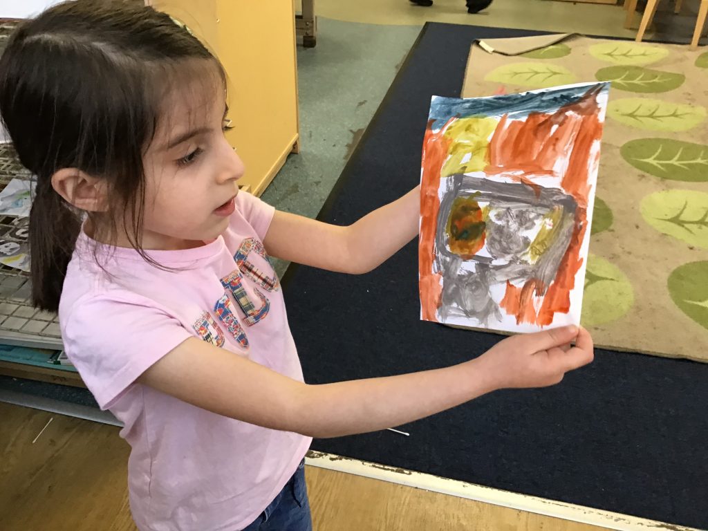 Today the children used watercolour paints and pencils to create images of The Big bad wolf and Little Red. We talked about the characters in the story and discussed the colours and style that the illustrator had used to make the images in the book.