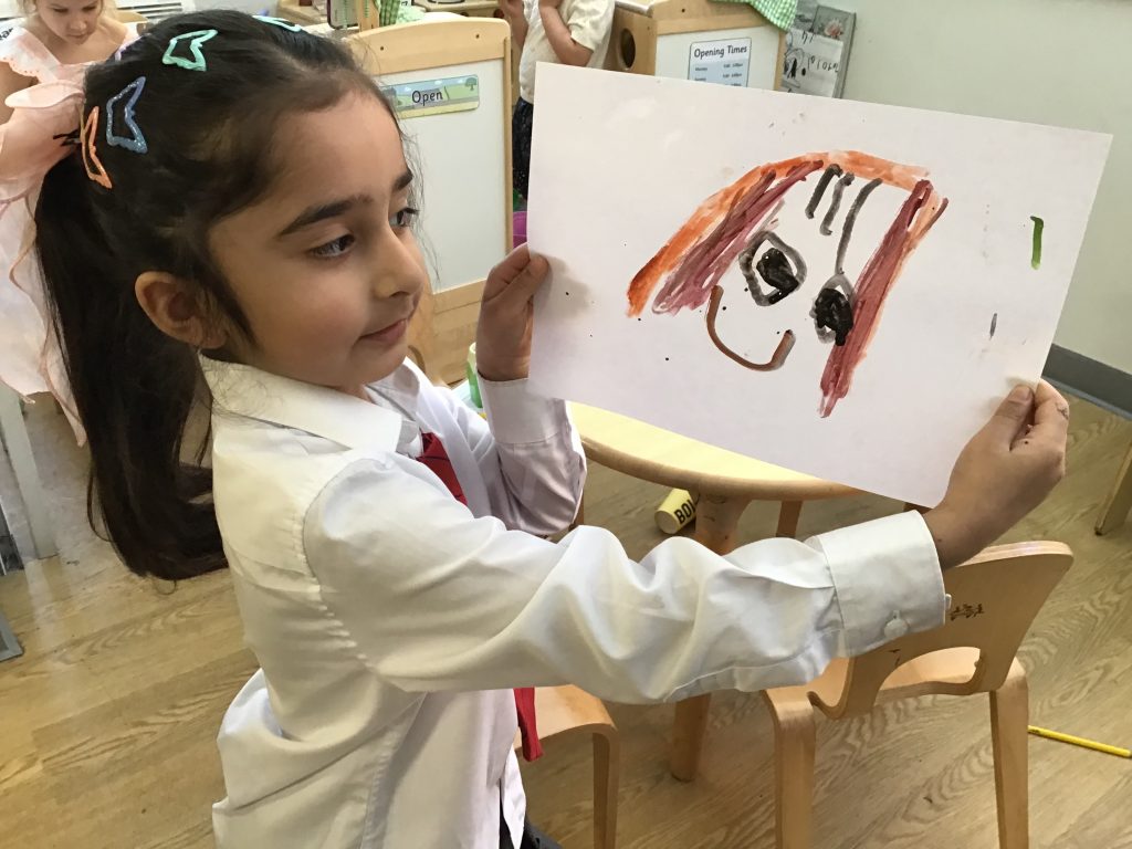 Nursery have been enjoying the story ‘Aliens Love Underpants’ by Claire Freedman and Ben Cort. The children practised their fine motor skills by hanging underpants on the washing line, carefully opening the pegs and counting how many they had hung.