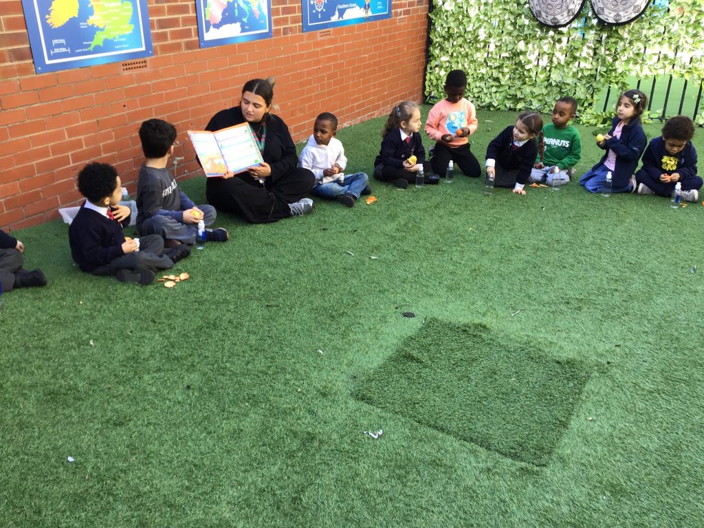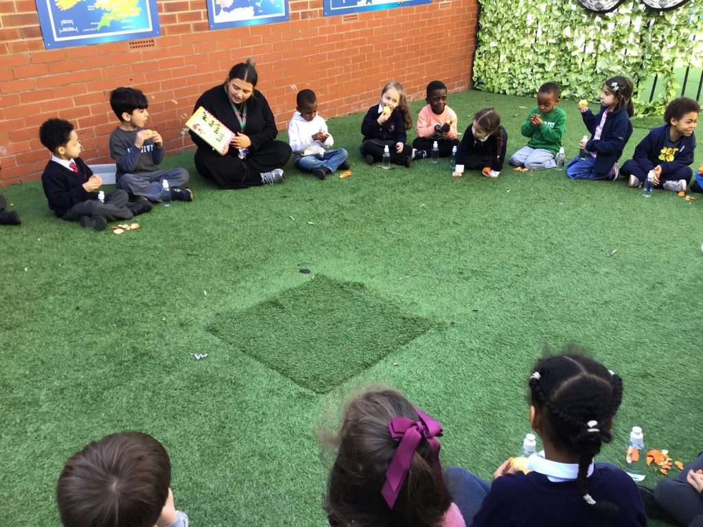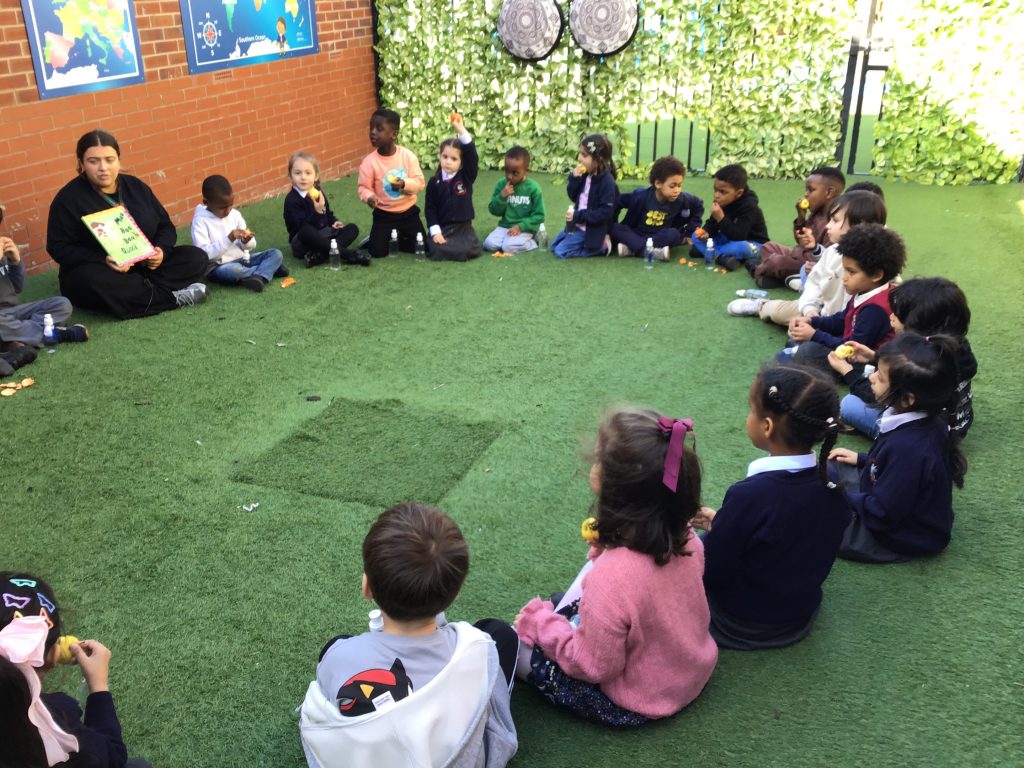 The children had a lovely story outdoors today as they enjoyed their drinks and a snack, consisting of either an apple, pear or tangerine.