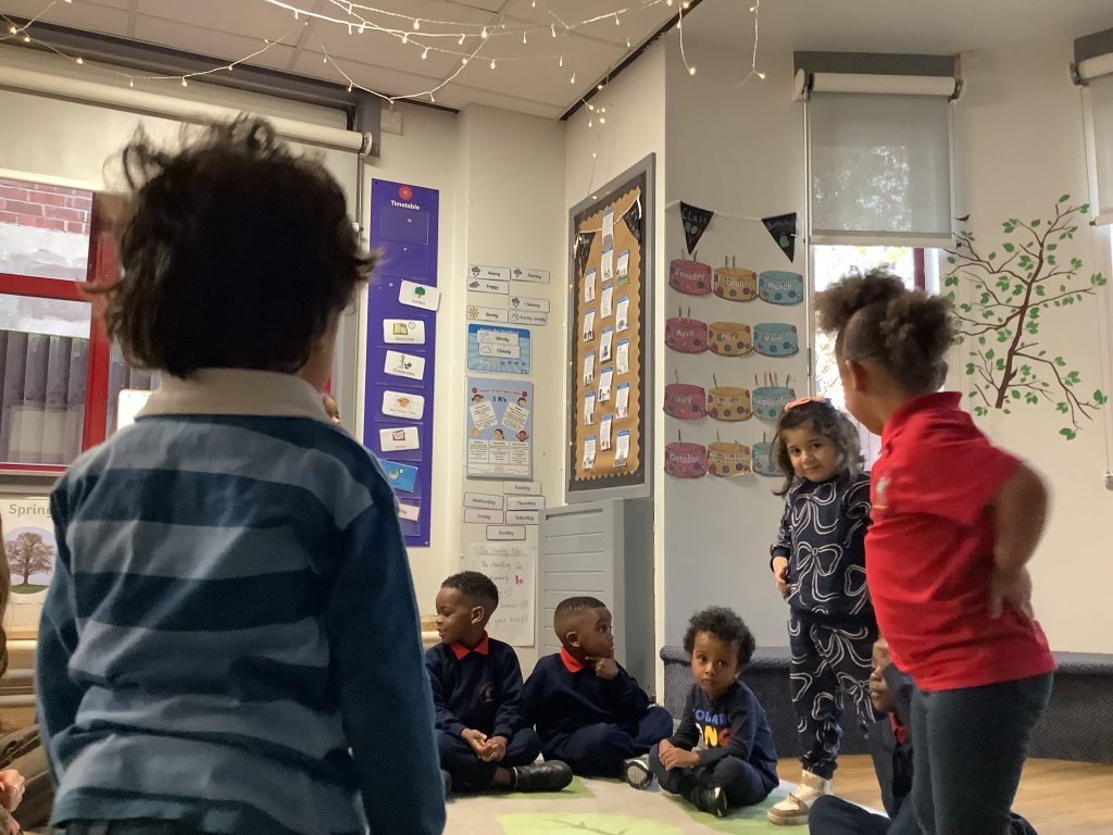 Every morning the children love taking part in Wake up, Shake up. We move our bodies in different ways and experiment with different dance moves and stretches. Each day the children take part in a different style of dance, this encourages the children to wake up and start their day actively.