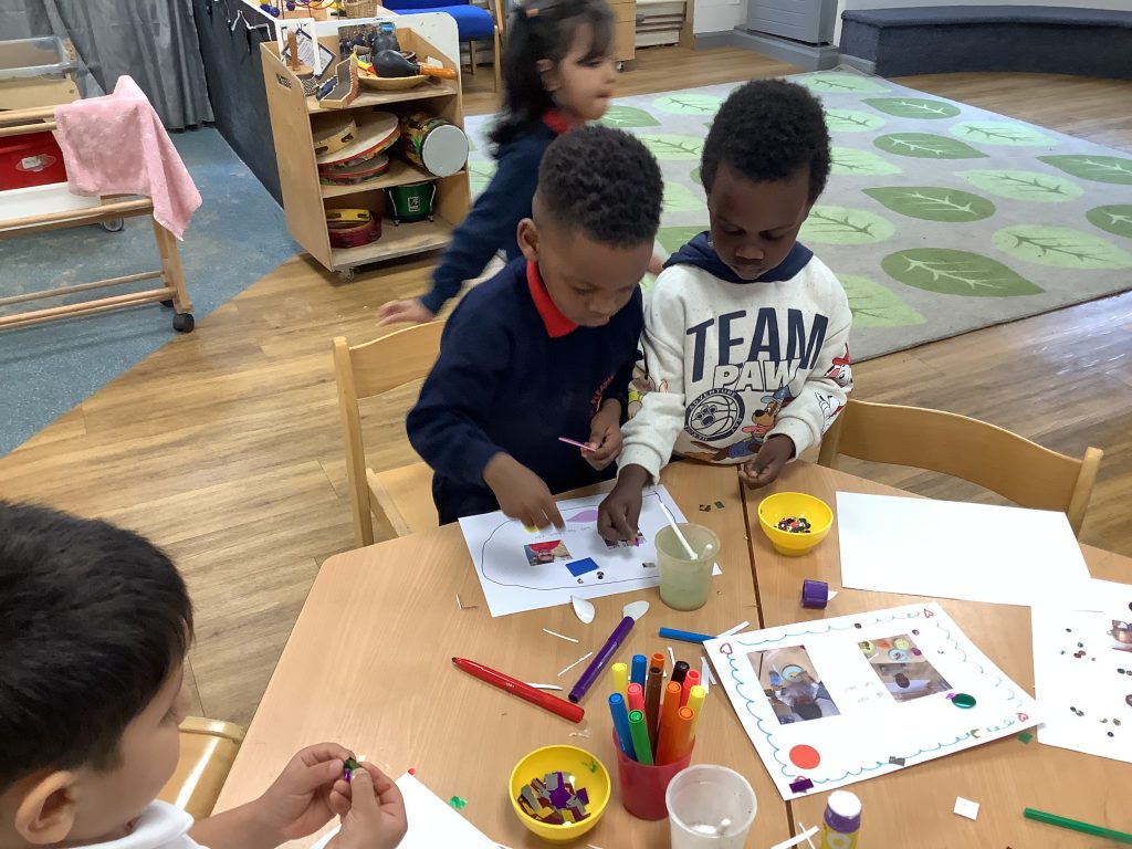 For Diversity Day, our Nursery children shared the story Whoever You Are by Mem Fox, helping us celebrate what makes each of us special. During circle time, the children took turns swapping places when they shared something about themselves, such as having a brother or sister or their favourite food. They then chose pictures of themselves and their friends and talked about their similarities and differences, noticing things like “I have brown hair like my friend” or “we have different coloured skin.” Then the children decorated their friendship pictures. It was a wonderful way to explore friendship, respect, and belonging.