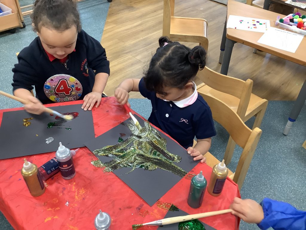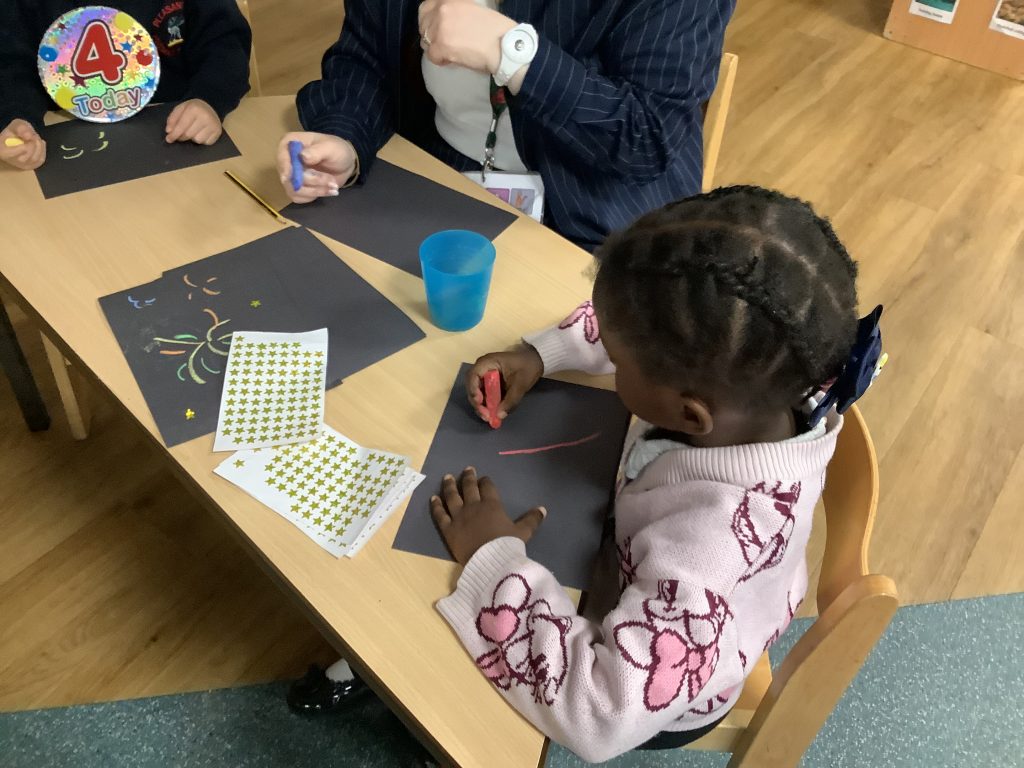 Our Nursery children had a wonderful time creating fantastic Bonfire Night pictures using glitter glue, paints, and loose parts to make bright, sparkling fireworks. They enjoyed watching a firework display and an information video to learn more about how people celebrate Bonfire Night. Afterwards, the children talked together about how to stay safe when watching fireworks and sparklers. It was a fun, creative, and colourful week full of excitement and learning!