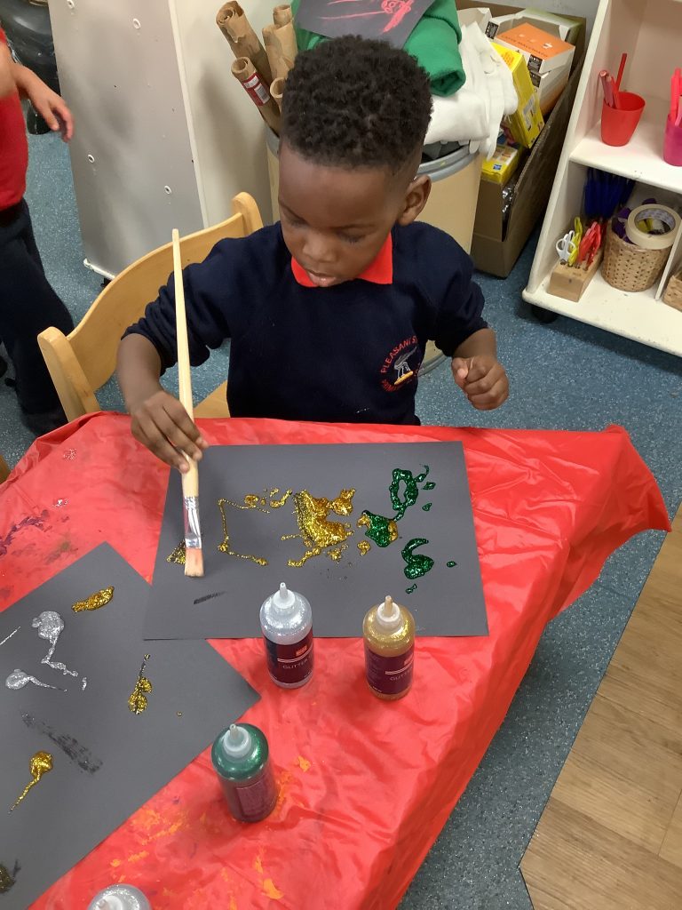 Reception have enjoyed learning all about Lunar new year this week, they created some fantastic lanterns and has lots of fun activities to explore. The children really enjoyed exploring the gelibaff and creating patterns on snakes.