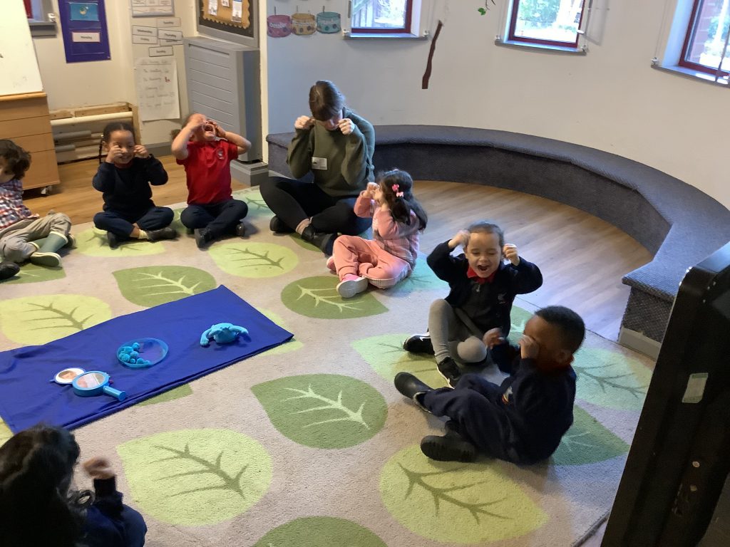 Nursery have been reading the poem The Blues by Joseph Coelho for this terms Diversity Day, which explores feelings of sadness and ways we can help ourselves feel better. During circle time, the children used their faces to show different emotions, talking about how we might feel when we are “blue.” They then drew pictures to share their own ideas about how to get out of the blues, such as playing, spending time with friends, or doing things they enjoy. It was a thoughtful and supportive session that helped the children explore emotions and build emotional understanding
