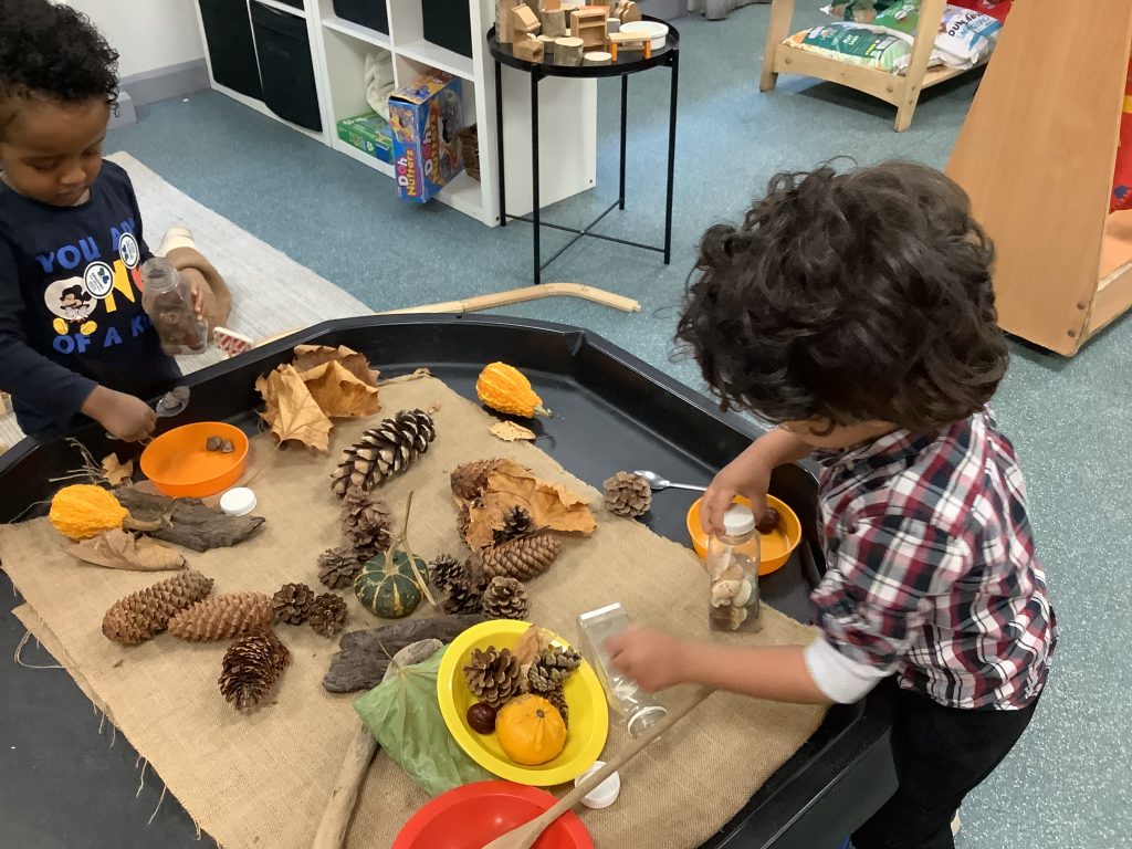 This week, our Nursery children have been exploring the natural world and discovering the changes in autumn. Out in the garden, they have been busy collecting leaves, exploring pine cones and conkers using their senses to look closely, touch, and talk about what they notice.