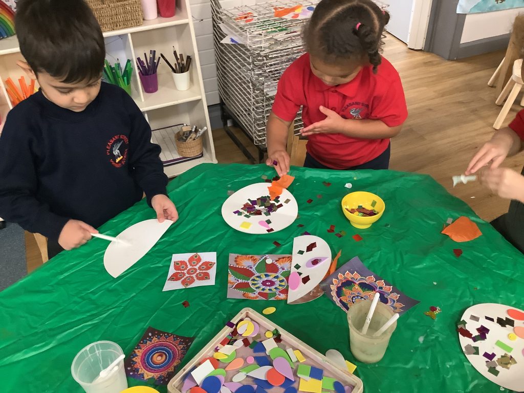 This week, our Nursery children have been learning about Diwali, the Festival of Lights. They explored the celebration by creating beautiful patterns and decorating their own Diya lamp paper plates with bright colours, glitter, and sequins. The children enjoyed talking about light, colour, and celebration, helping them to learn more about different traditions and festivals from around the world.