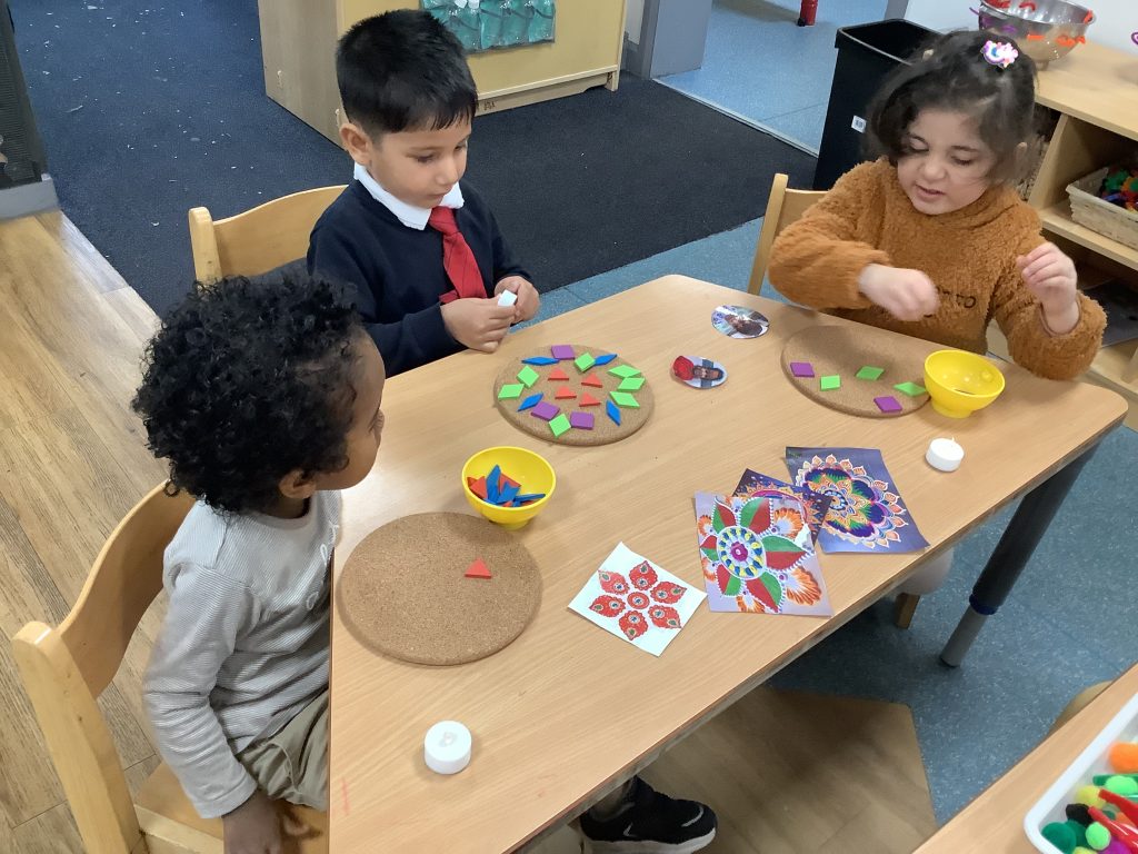 In Nursery, the children have been exploring 2D shapes through fun, hands-on activities. They have been learning to name and describe shapes such as circles, squares, triangles and rectangles, using words like sides, corners and round.