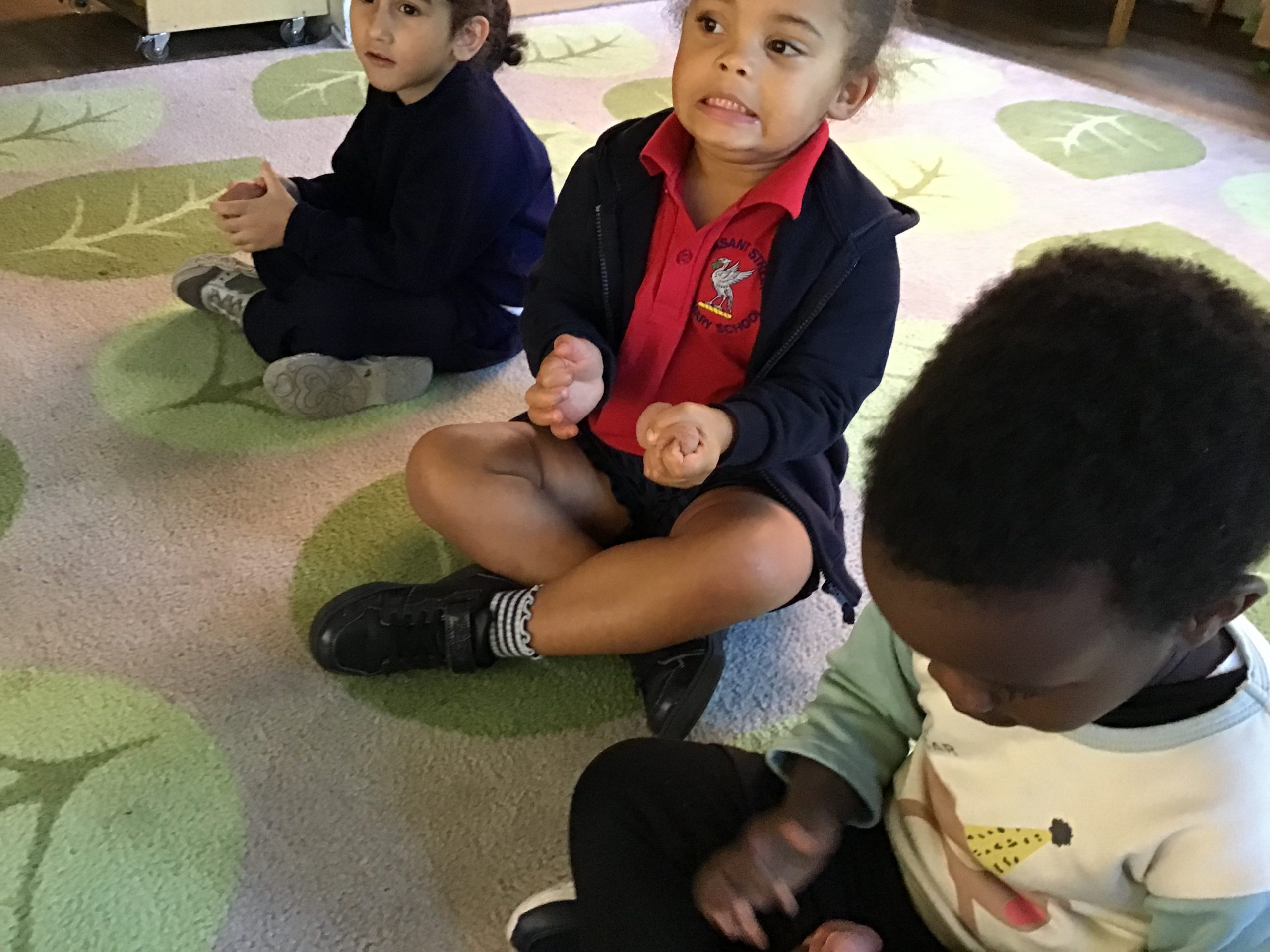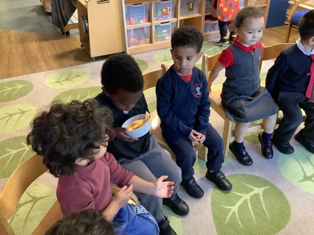 The children listened to the story, The Squirrels who Squabbled. We noticed what happened when Cyril and Bruce argued over a nut they got into all kinds of trouble. We discussed being kind to each other and how important it is to share. We spoke about the things we can share with our friends and families in school and at home.