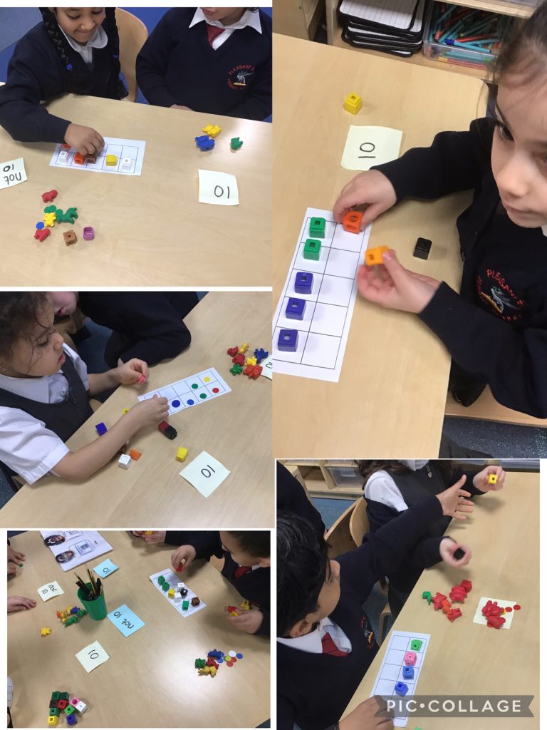 Today in maths we done an activity using counters, cubes and counting bears and seeing if they add up to 10, the children had to find out if they did or didn’t add up to 10 and if they didn’t add up to 10 then they told us how many more they needed.