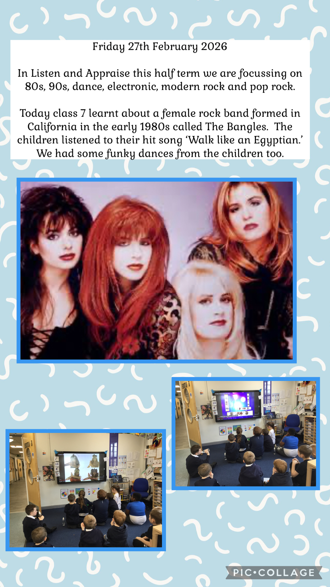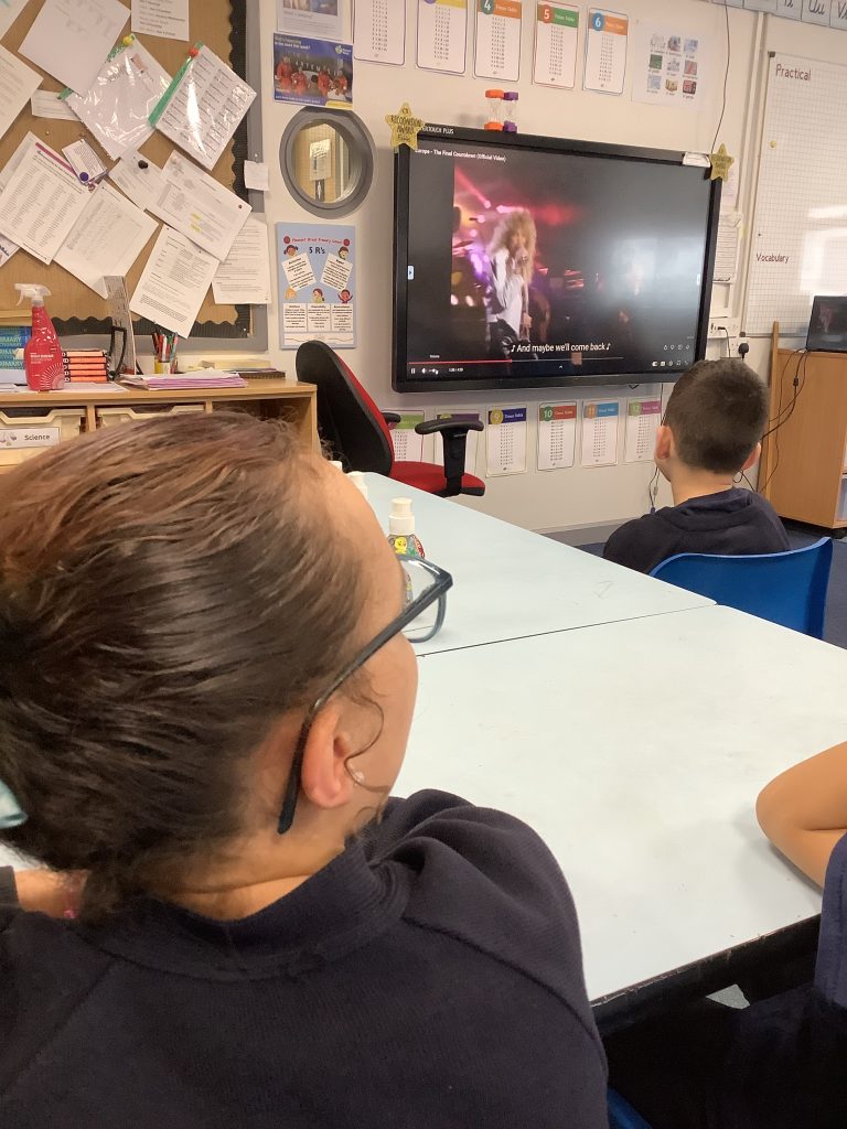 The children enjoyed the acoustic sounds of Oasis this afternoon, with their single ‘Don’t look back in anger’. They enjoyed the guitar sounds especially!!??