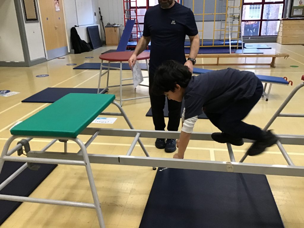 Pupils worked on balance, shape jumps and controlled landings using benches and mats. They explored straight, star and tuck jumps, focusing on strong body tension, safe take-offs and soft, bent-knee landings.