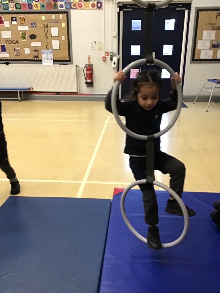 Today we had the climbing frame out and the ropes and mats. We were able to show off our tricks we’ve learnt over the term. This was lots of fun to be able to make routines with each other and get confident doing activities.