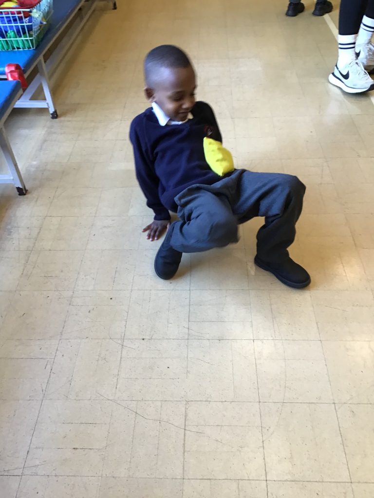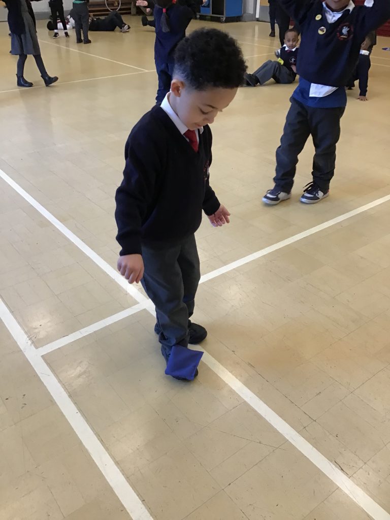 The children in Reception are taking part in a six week fundamental physical skills class. We began by listening to the story of Jack and the beanstalk, then we thought of different ways Jack may have traveled to the market and carefully balanced a beanbag around the hall.