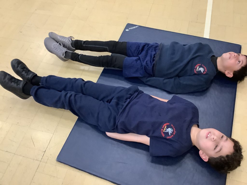 What are you grateful for? Children had a chance to talk about the things that they are grateful for. Coming to school , my sisters and brothers, football and going to the park was just a few answers we had. We then did some stretches and breathing techniques to get us started.