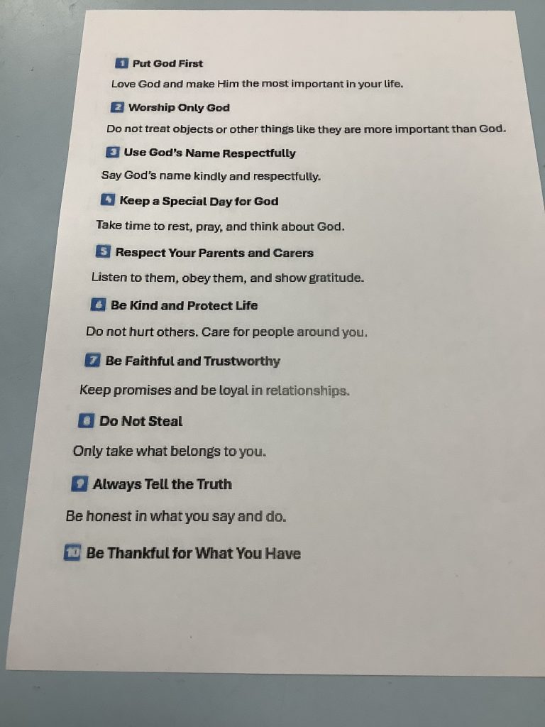The children discussed the Ten Commandments this afternoon before debating the merits of the first three.