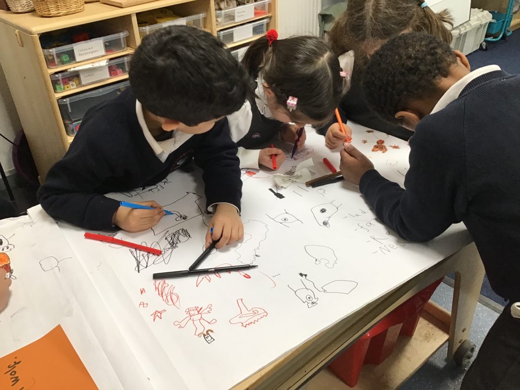 We have been thinking about a story called Juniper Jupiter by Lizzy Stewart. This week the children have been making masks and pretending to be a character from the story. We began by asking Juniper Jupiter questions. Then the children took turns to sit on the hot seat and pretend to be Juniper themselves answering questions from the rest of the class.