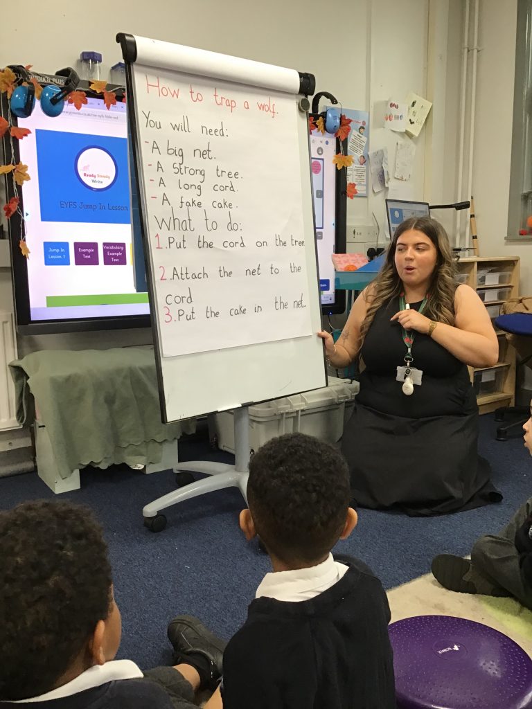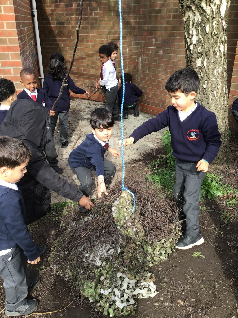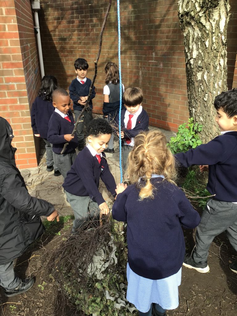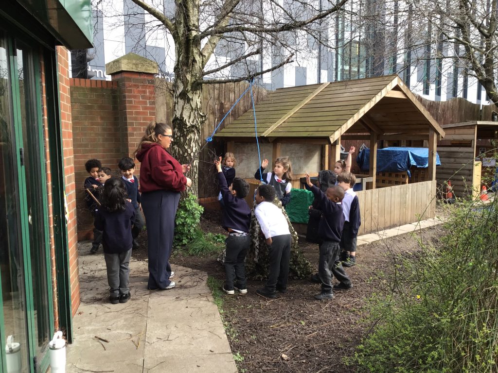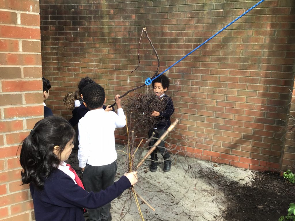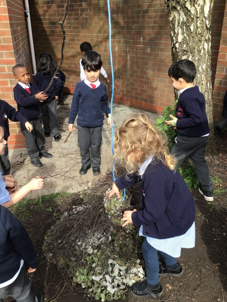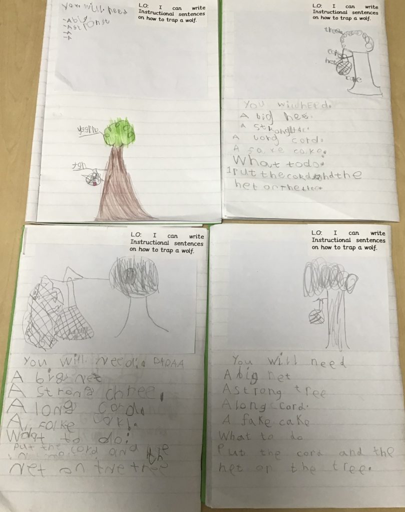The BIg Bad wolf came to school and wanted to eat the pancakes for our Easter breakfast ! So we made a plan to trap the wolf and save our breakfast, the children discussed ideas then we drew a plan and wrote a list of materials that we needed. Finally the children built a trap to catch the wolf in the garden with a toy cake to entice the wolf and catch him in the net.